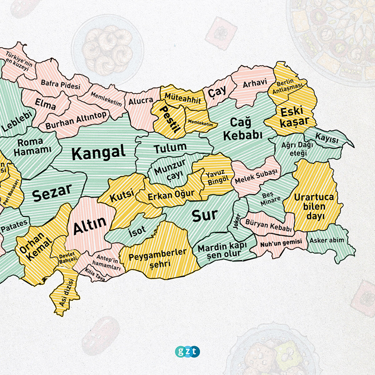 GZT'nin harita serisinde bu hafta 3 editörümüzü konuk ettik. Sosyal Medya Editörlerimiz Cemile Rüveyda Özmen, Rumeysa Nur Kahveciler ve Ayşe Akkuş Türkiye haritasına baktı ve akıllarına ilk gelenleri söyledi. Siz de kendi memleketinizin en belirgin özelliğini yorum kısmından bizimle paylaşabilirsiniz.