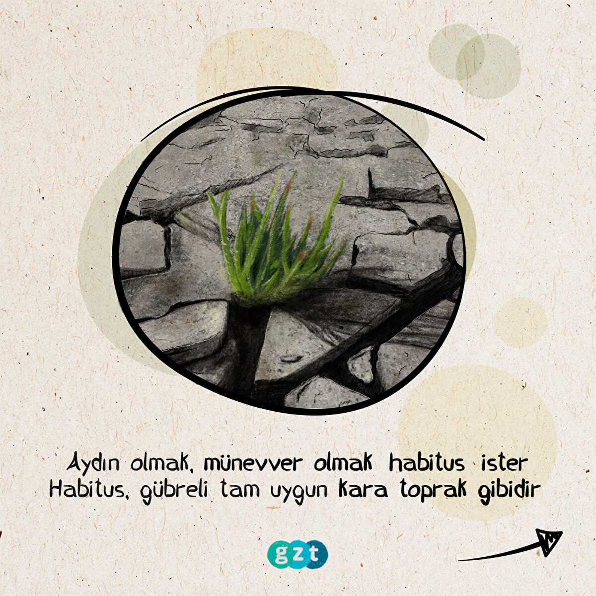 Aydın olmak, münevver olmak 'habitus' ister. Habitus, gübreli tam uygun kara toprak gibidir. Habitus buradan yeşerir, tek başına olmaz. Habitusu bulursa insan, içi kıpırdar ama allame-i cihan olsan eğer habitus yoksa, çok zor. Türkiye'de o habitus kayıp.Türkçe perişan, birbirimizin konuştuğunu anlamıyoruz.