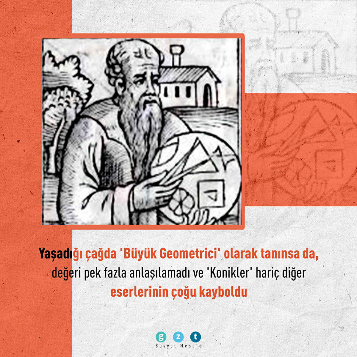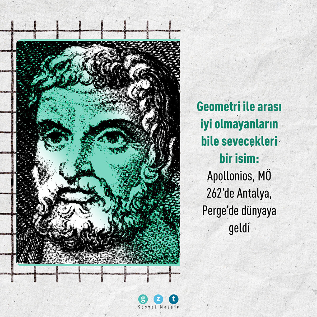 Rönesans Çağı'nda kıymeti bilinen, Kopernik, Kepler ve Galileo gibi isimlerin çalışmalarına ilham olan Apollonios, MÖ 262'de Perge'de dünyaya geldi. Geometri alanında yaptığı çalışmalarla, Öklid'in buluşlarını ilerletti. Konikler adlı eseri, dünyanın en çok okunan kitaplarından biri oldu. Uluslararası Astronomi Birliği, bilime katkılarından dolayı Ay üzerindeki kraterlerden birine onun adını verdi.