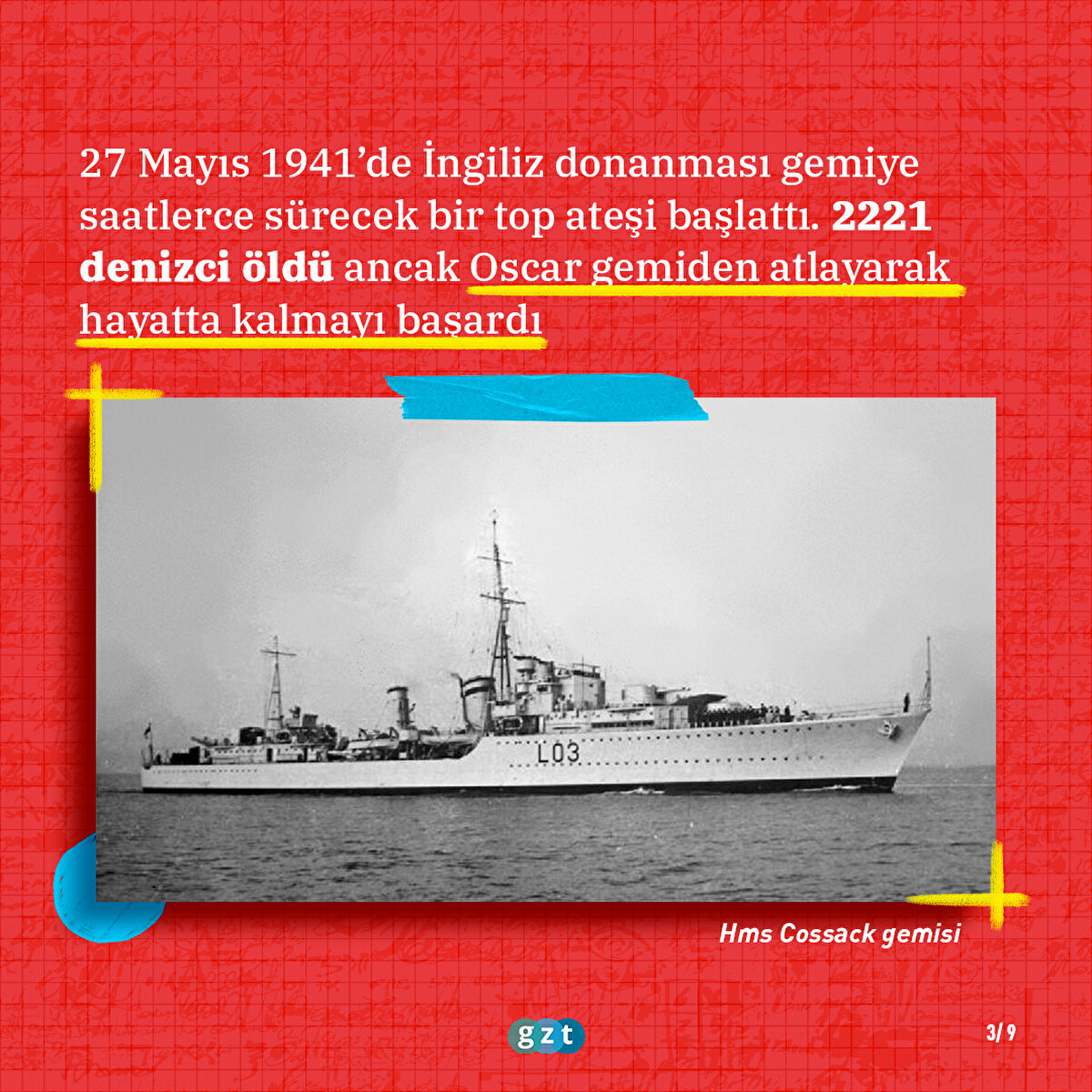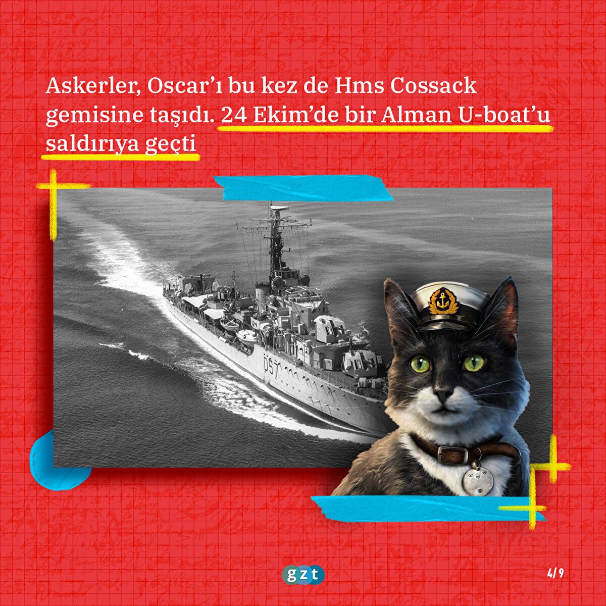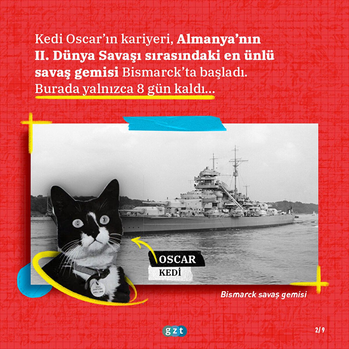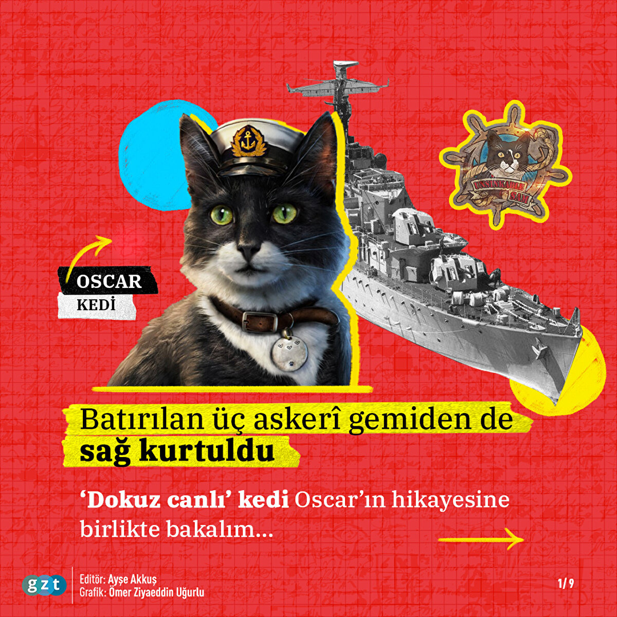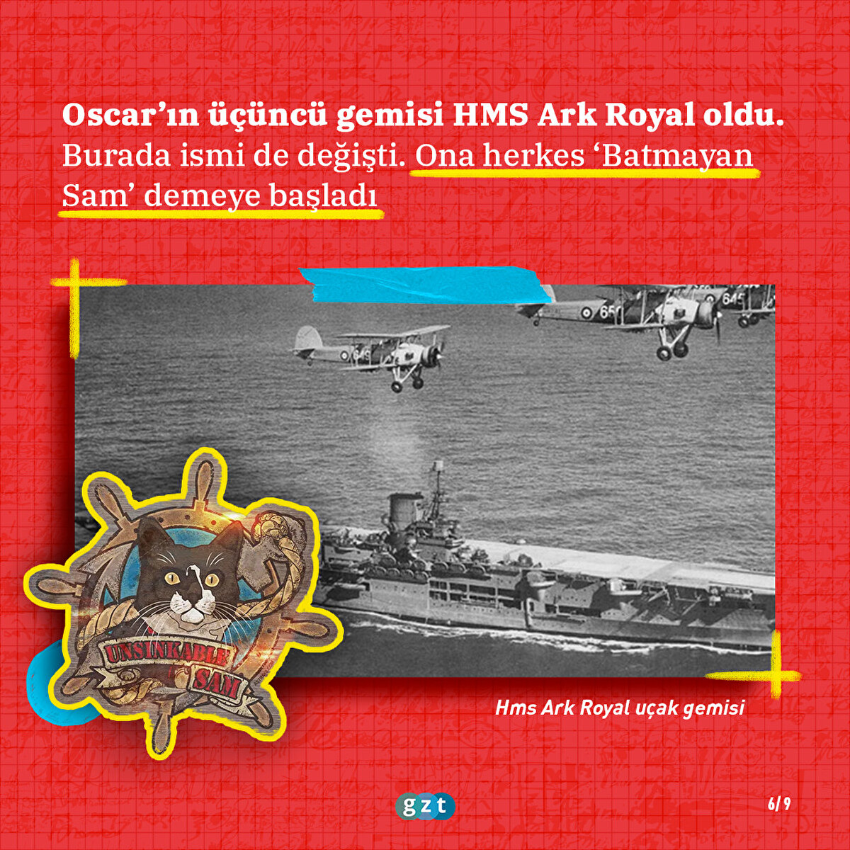 Kimileri onu Oscar, kimileriyle Unsinkable Sam (Batmayan Sam) adıyla tanıyor. Denizlerin minik mürettebatı gerçekten de 9 canlı olduğunu kanıtlayan bir maceranın baş kahramanı. II. Dünya Savaşı'nda Almanya'nın en ünlü savaş gemilerinden biri olan Bismarck'ta kariyerine başlayan Oscar, çoğu denizciye nasip olmayan bir şansın da hikayesinin başlangıcıydı. Savaş döneminin en hararetli sürecinde batırılan üç büyük gemiden de sağ kurtulmayı başaran Batmayan Sam2in hikayesi....