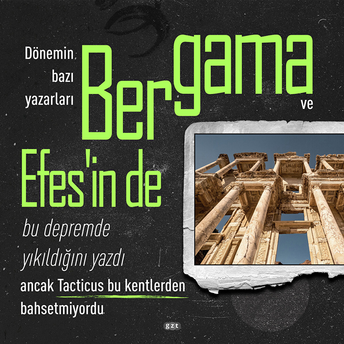 17 yılında gerçekleşen Lidya depremi, Yaşlı Plinius tarafından 'insanoğlunun gördüğü en büyük deprem' olarak tanımlandı. En az on iki şehrin yerle bir olduğu afet hakkında antik dönemin yazarları, şairleri ve tarihçileri birçok eser kaleme aldı. En fazla can kaybı Sardes'te oldu. Üzerinden yıllar geçtikten sonra bile şehir tam olarak toparlanamadı. Dönemin bazı yazarları Bergama ve Efes'in de bu depremde yıkıldığını yazdı ancak Tacticus bu kentlerden bahsetmiyordu.