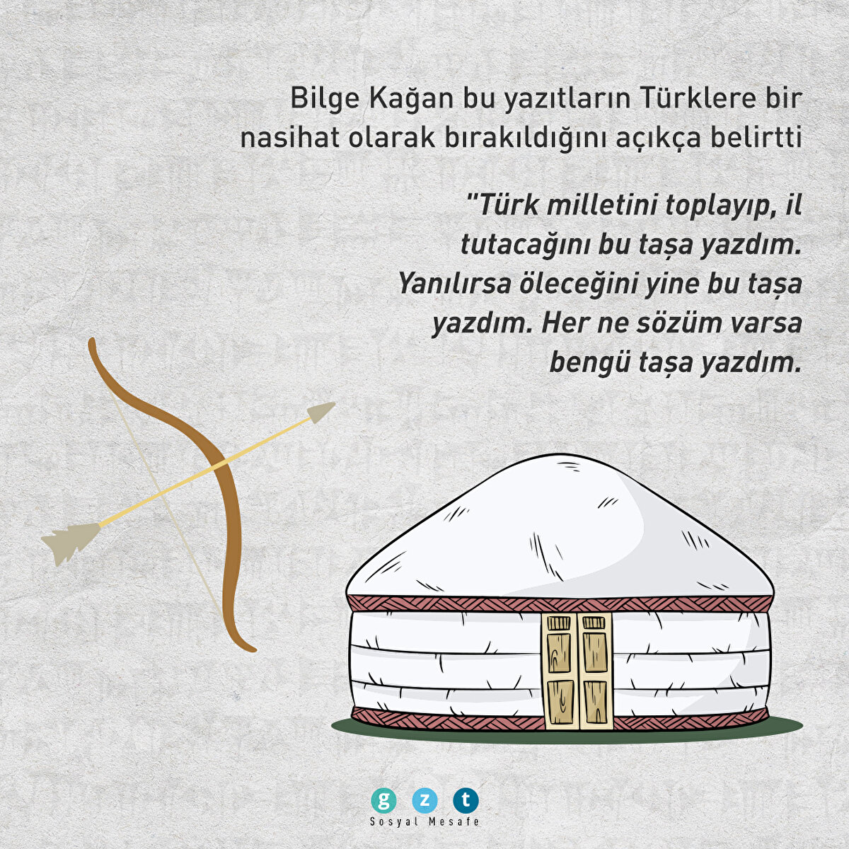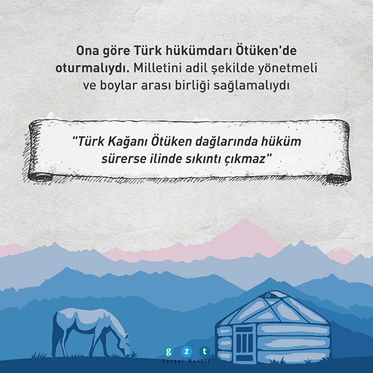 II. Gök-Türk Devleti'nin hükümdarı Bilge Kağan, hem Orhun Yazıtları hem de Çin kaynaklarında milletini çok seven, başarılı bir kağan olarak anlatıldı. 8. yüzyılda dikilen Orhun Yazıtları'nda Bilge Kağan, '"Ey Türk! Üstte gök yıkılmaz, altta yer delinmezse senin devletini, töreni kim bozabilir?" sözleriyle bunu belirtmişti. Yazıtında önceki Türk devletlerinin neden yıkıldığını, kağanın ve boyların görevlerini anlattı. Kurulan devletin sonsuza dek ayakta kalması için nasihatler verdi.