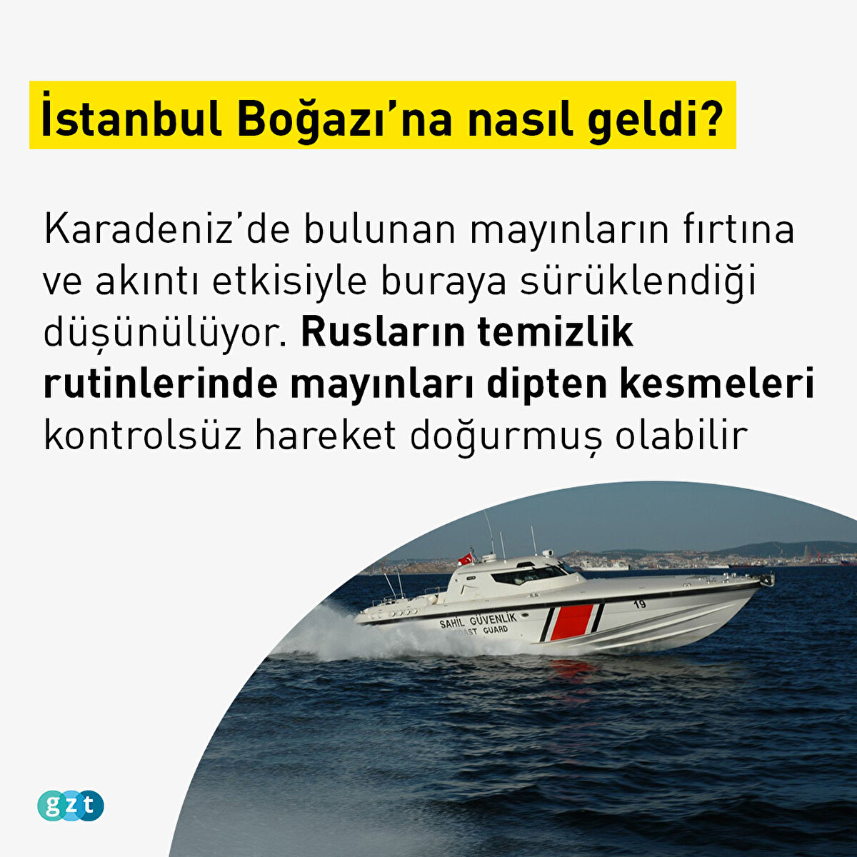 Rusya-Ukrayna savaşında bir ay geride kalırken, Ukrayna'nın Odessa'dan Rus savaş gemilerini durdurmak için Karadeniz'e bıraktığı ve fırtına sonucu çıpalarından kurtulup sürüklediği öne sürülen mayın İstanbul Boğazı'nda tespit edildi.