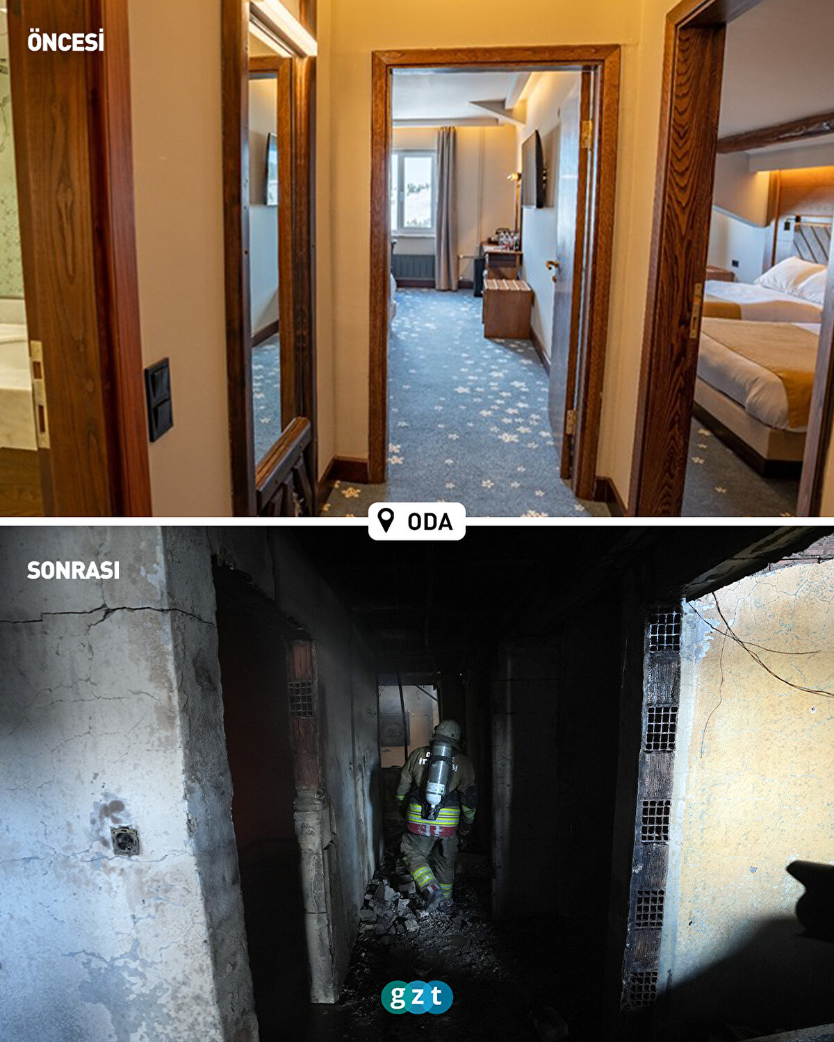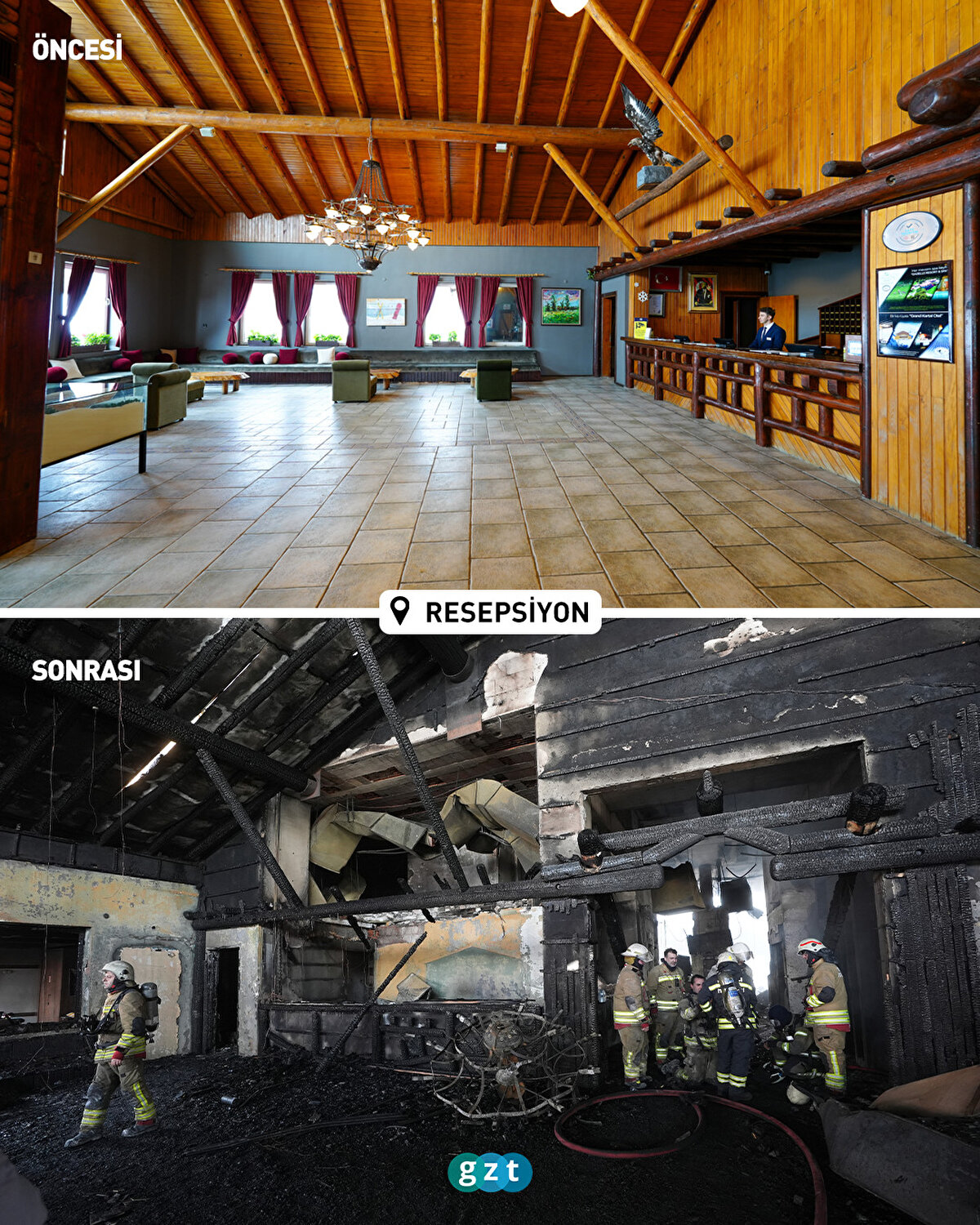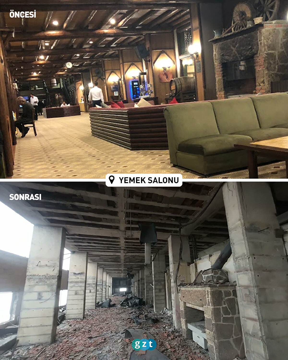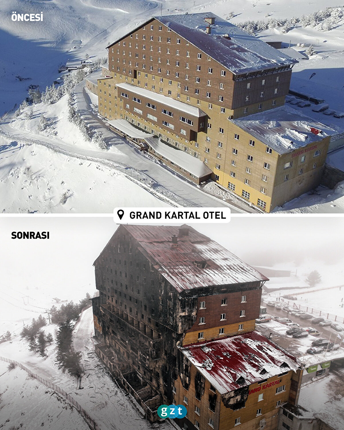 Bolu Kartalkaya'daki yanan otelin öncesi ve sonrası