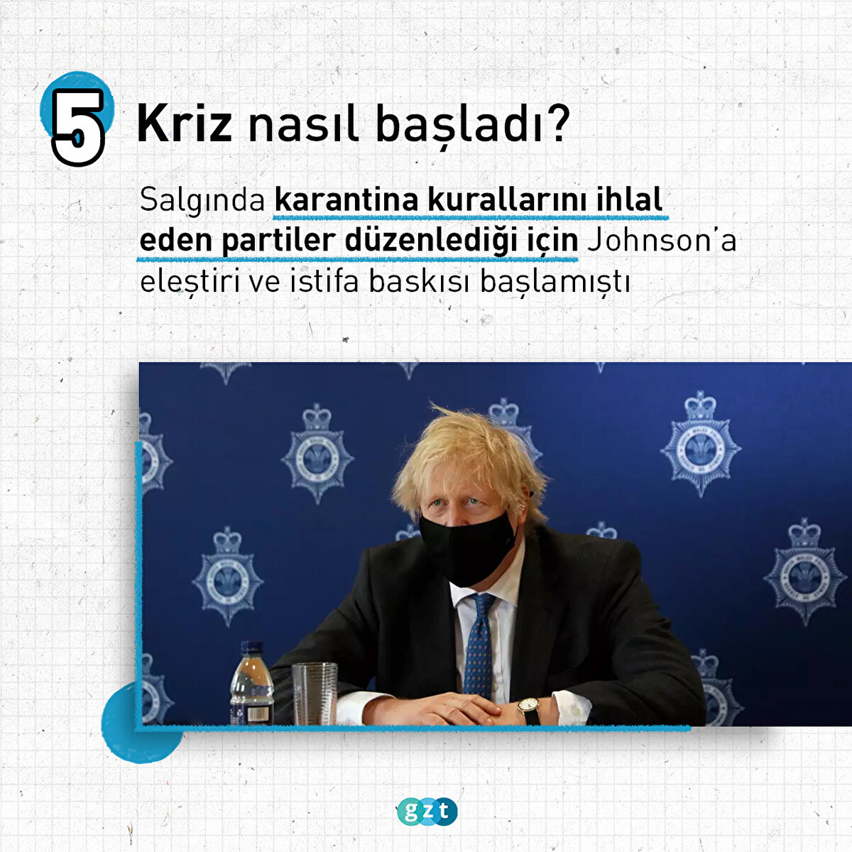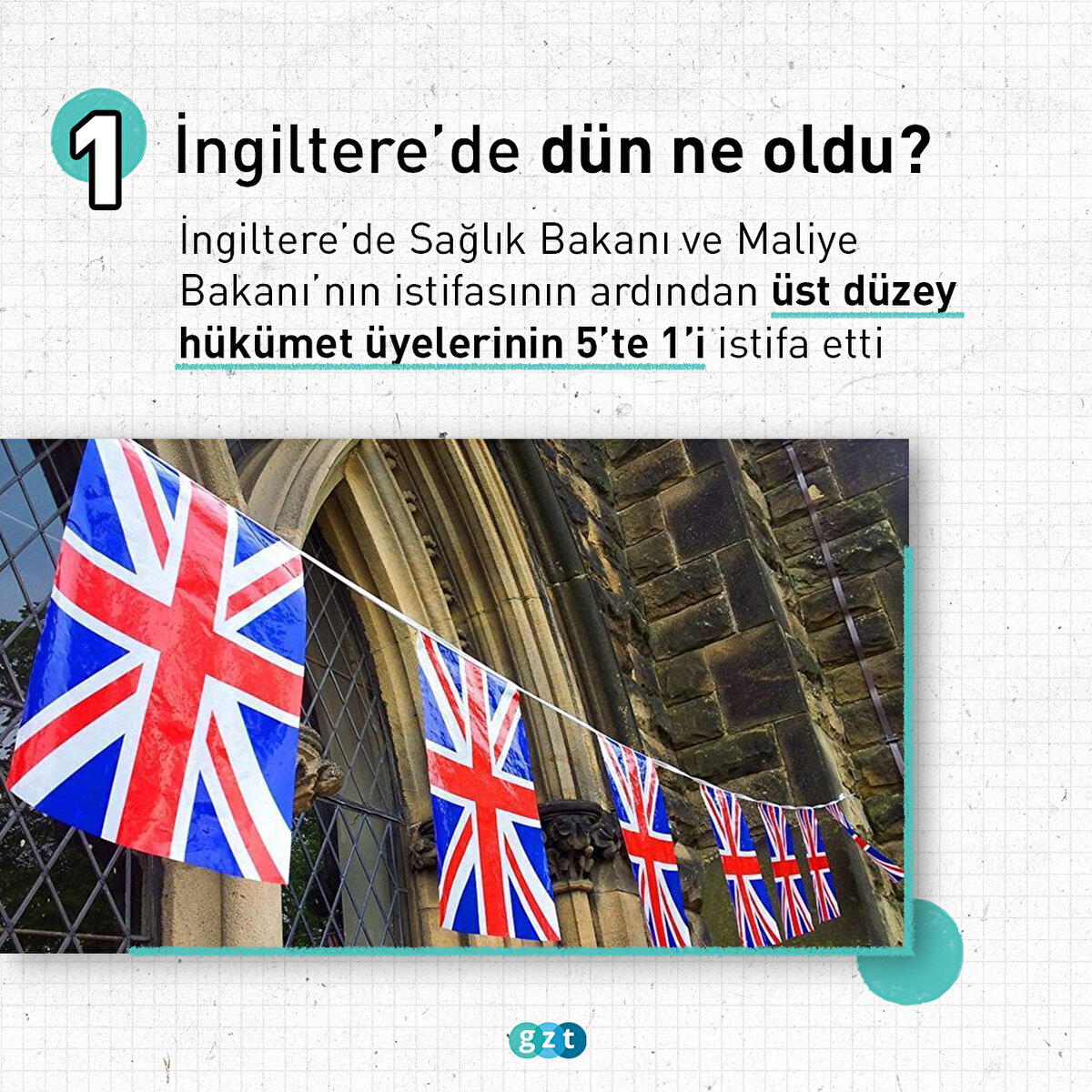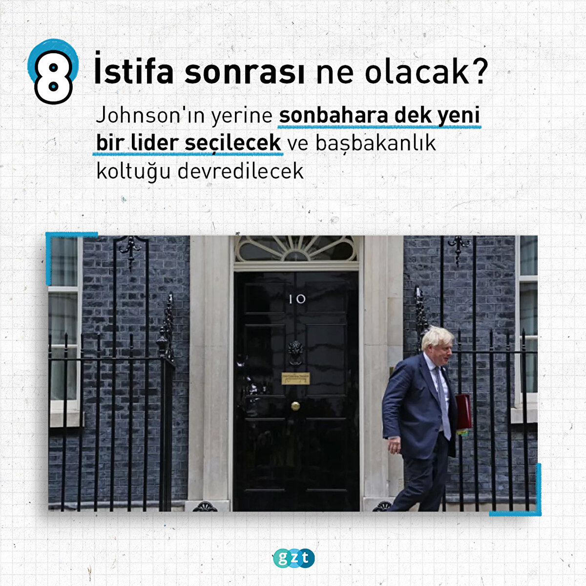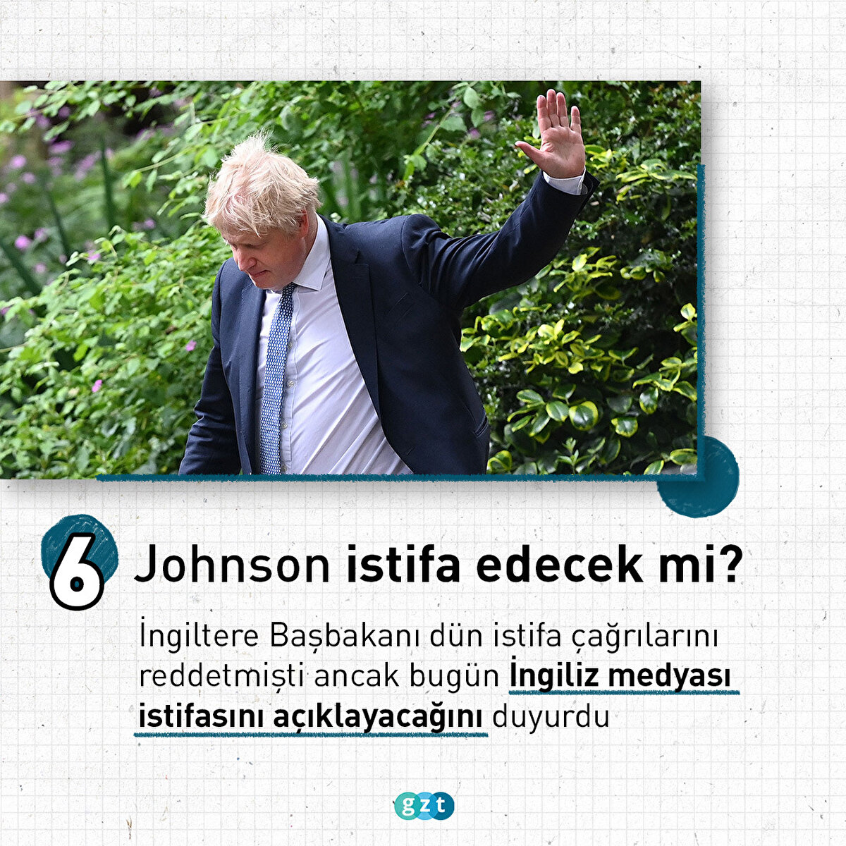 İngiltere'de peş peşe istifa dalgası yaşandı ve iki bakanın istifasının ardından hükümetin 5'te 1'i istifa ettiğini duyurdu. İngiltere Başbakanı Boris Johnson'un başbakanlıktan istifa etmesi içi çağrıların sesi daha da yükseldi. İngiltere Başbakanı Boris Johnson'ın iktidardaki Muhafazakar Parti liderliğinden istifa edeceği ve sonbaharda yapılacak parti başkanlığı seçimine kadar başbakan olarak devam edeceği duyuruldu. Johnson'ın liderliğini yaptığı iktidardaki Muhafazakar Parti içerisinde yeni bir liderlik yarışı başlayacak ve parti yeni liderini belirleyecek, ardından başbakanlık koltuğu devredilecek.