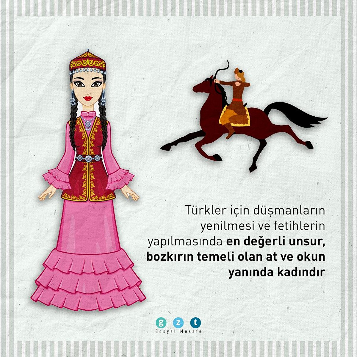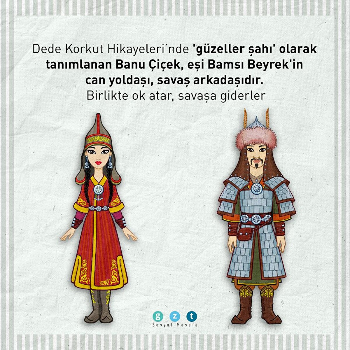 Bilge Kağan, Orhun Yazıtları'nda annesi ve teyzesine hitap ederek söze başladı. Banu Çiçek, eşi Bamsı Beyrek'in savaş arkadaşı ve can yoldaşı oldu. Eski Türklerde zırh giyip savaşa giden, orduya liderlik eden kadın kahramanlara 'alp kadın' adı verildi.