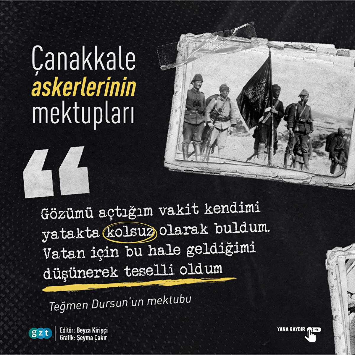 18 Mart'ın ruhunu ortaya koyan en önemli belgeler, cephedeki askerlerimizin mektupları ve günlükleriydi. Düşmanla savaşırken neler yaşadıkları, cephede ne hissettikleri, şehit olmaya adım adım yaklaşırken ailelerine son sözleri ve daha pek çok detay, Çanakkale askerlerinin mektuplarında yer alıyor.