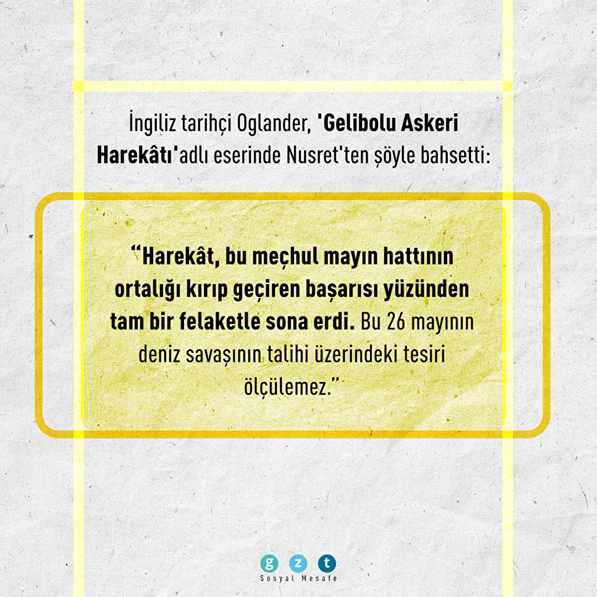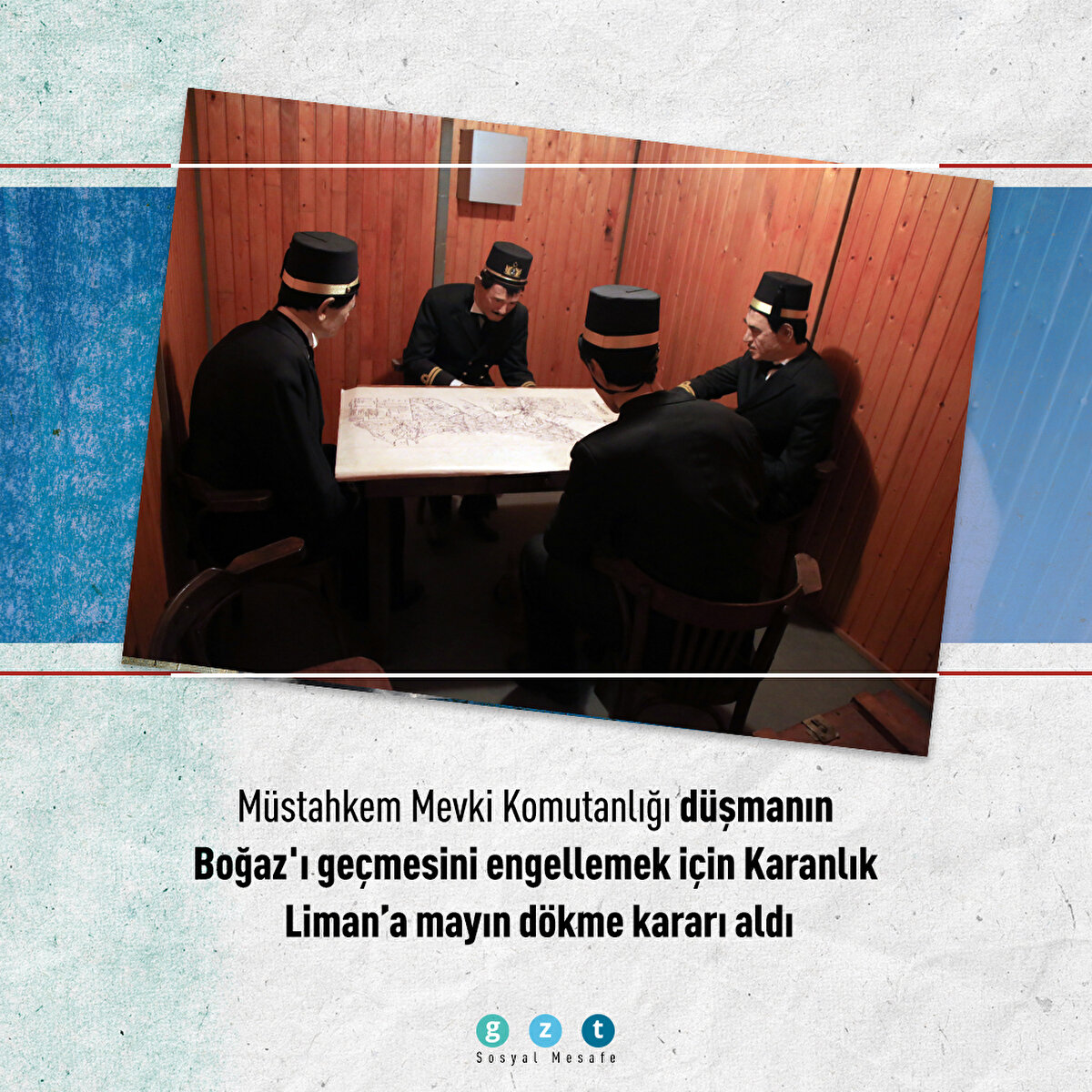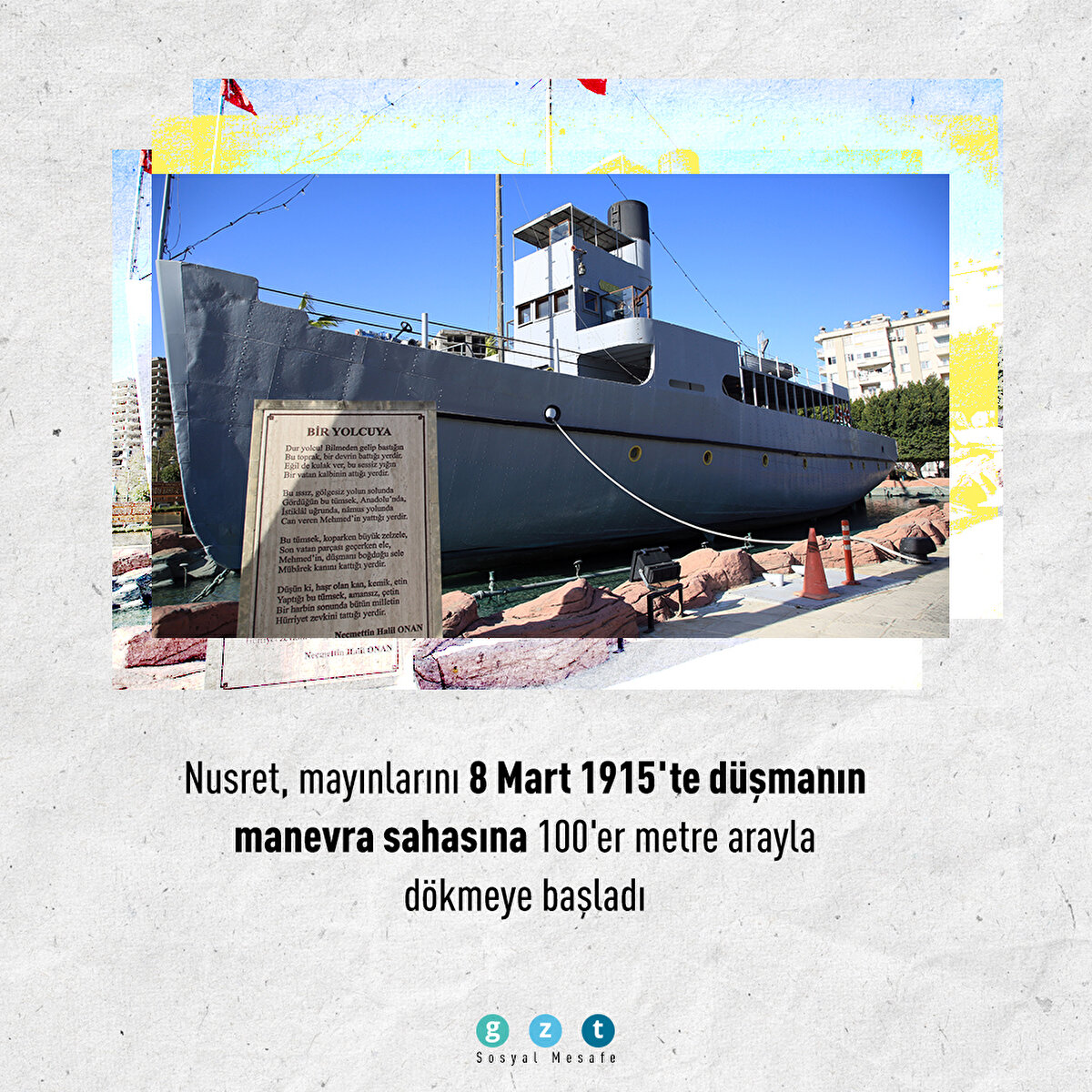 1911'de Almanya'da yapılan Nusret Mayın Gemisi, 1913'te Osmanlı donanmasına katıldı. İtilaf Devletleri Şubat 1915'te Boğaz'daki tabyaları bombalamaya başladı. Keşif uçuşlarıyla mayın alanlarını belirlemeye çalışıyorlardı. Müstahkem Mevki Komutanlığı düşmanın Boğaz'ı geçmesini engellemek için Karanlık Liman'a mayın dökme kararı aldı. İtilaf Devletleri, Nusret'in döşediği mayınlarla Irresistible, Ocean ve Bouvet adlı üç büyük gemilerini kaybettiler.