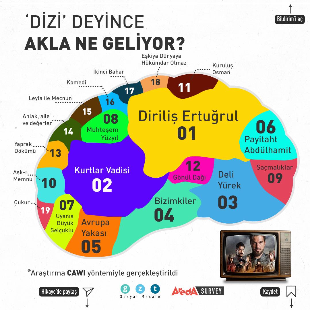 AREDA'nın yaptığı araştırmaya göre dizi denilince akla ilk olarak 'Diriliş Ertuğrul' geliyor.