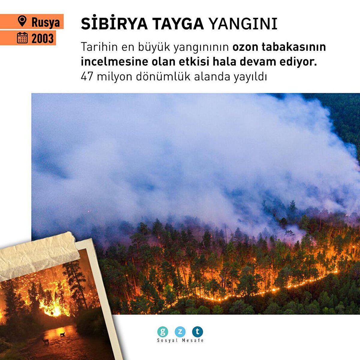 İklim değişikliğine, kuraklığa ve ekolojik dengenin bozulmasına yol açan orman yangınları kimi zaman aşırı sıcaklar nedeniyle kimi zaman da insanların doğaya müdahalesiyle ortaya çıkıyor. Tarih boyunca dünyanın pek çok farklı ülkesinde meydana gelen yangınlarda milyonlarca dönümlük alanlar kül oldu, birçok insan hayatını kaybetti. Şimdiye dek dünyanın en büyük orman yangını Sibirya'da meydana geldi ve 47 milyon dönümlük alanda yayıldı.