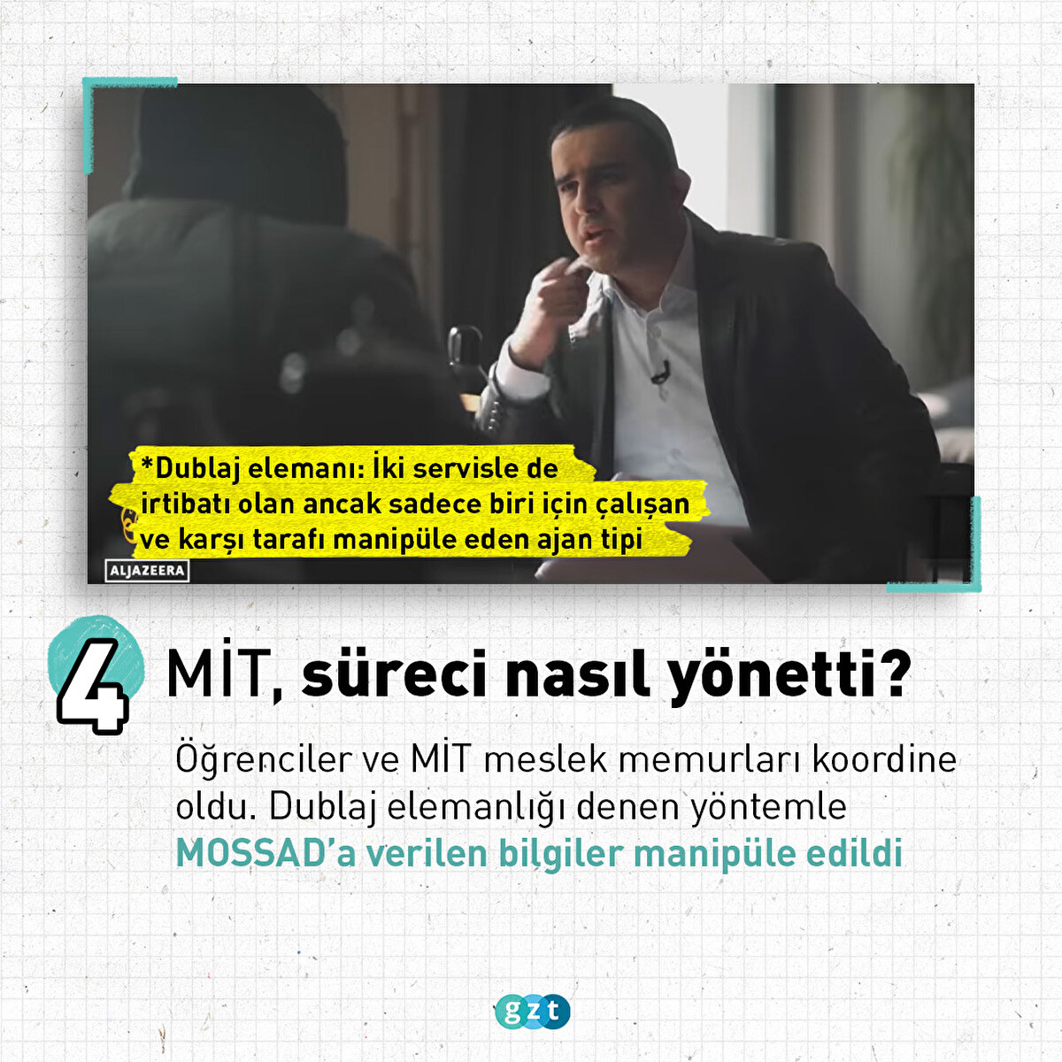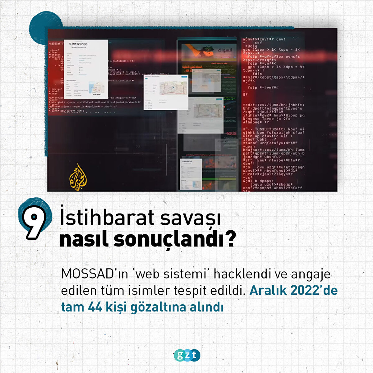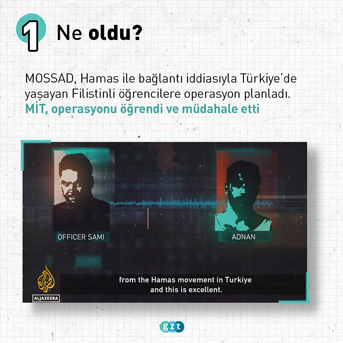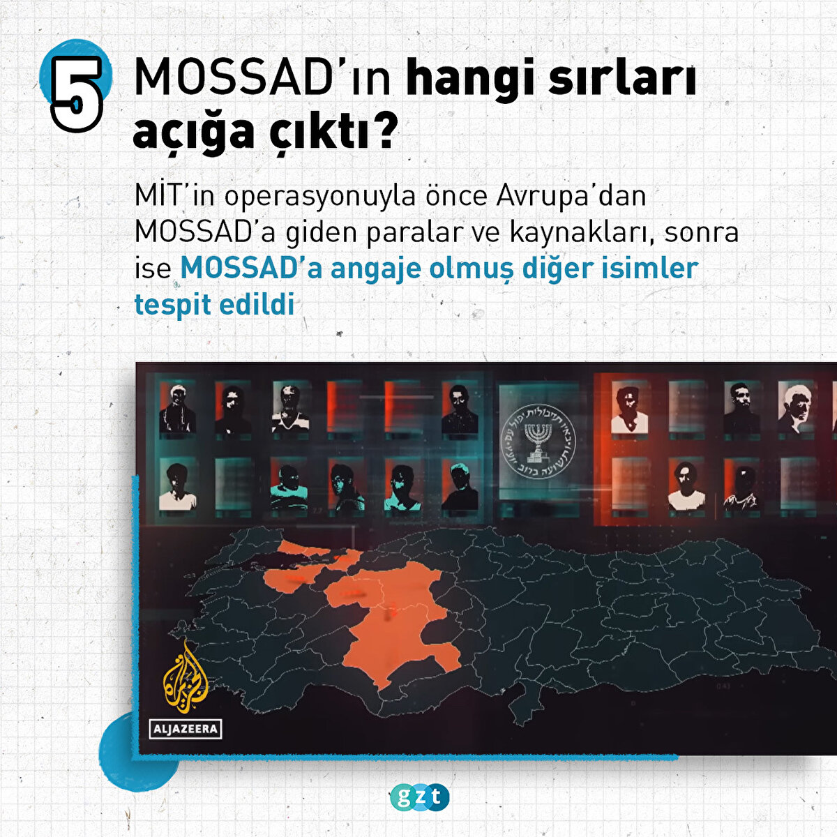 El Cezire, İsrail Ulusal İstihbaratı MOSSAD'ın 2021-2022 yıllarında Türkiye'de başarısız olan son operasyonuyla ilgili bir belgesel yayınladı. Belgeselde MİT ile MOSSAD arasındaki filmlere konu olacak mücadele ses kayıtları ile gözler önüne serildi. MİT'in, Türkiye'deki Filistinliler ile irtibat kuran ve bilgi almaya çalışan MOSSAD'ı 1,5 yıl dezenformasyon ile oyaladığı MOSSAD'ın kendileriyle işbirliği yapması karşılığında bir Filistinliye ise AB pasaportu hazırlattığı öğrenildi. Tüm yaşananların ardından ise İsrail gizli servisine çalışan muhbir şebekesi çökertildi
