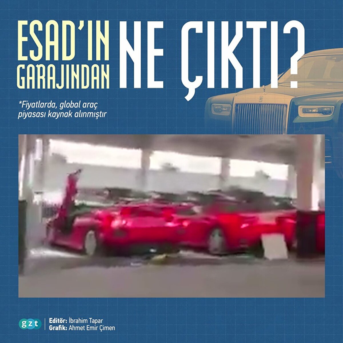 Beşşar Esad'ın Cumhurbaşkanlığı Sarayı'na giren rejim karşıtı silahlı güçler, pahalı araba koleksiyonunu da ele geçirdi. Aralarında son model araçların, spor arabaların, karavanların ve birçok lüks aracın olduğu garajın görüntüleri sosyal medyada çok konuşuldu