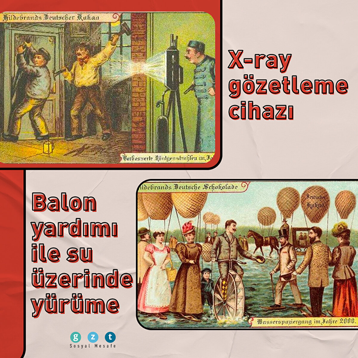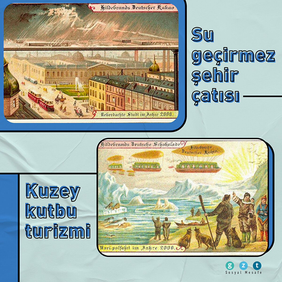 1900 Paris Dünya Fuarı'nın bir parçası olarak Hildebrand Çikolata Fabrikasının başlattığı pazarlama kampanyası "2000 yılında Almanya" başlıklı ve 21. yüzyıl hayatını betimleyen renkli kartpostallar içeriyordu. Peki sen geleceği nasıl hayal ediyorsun?