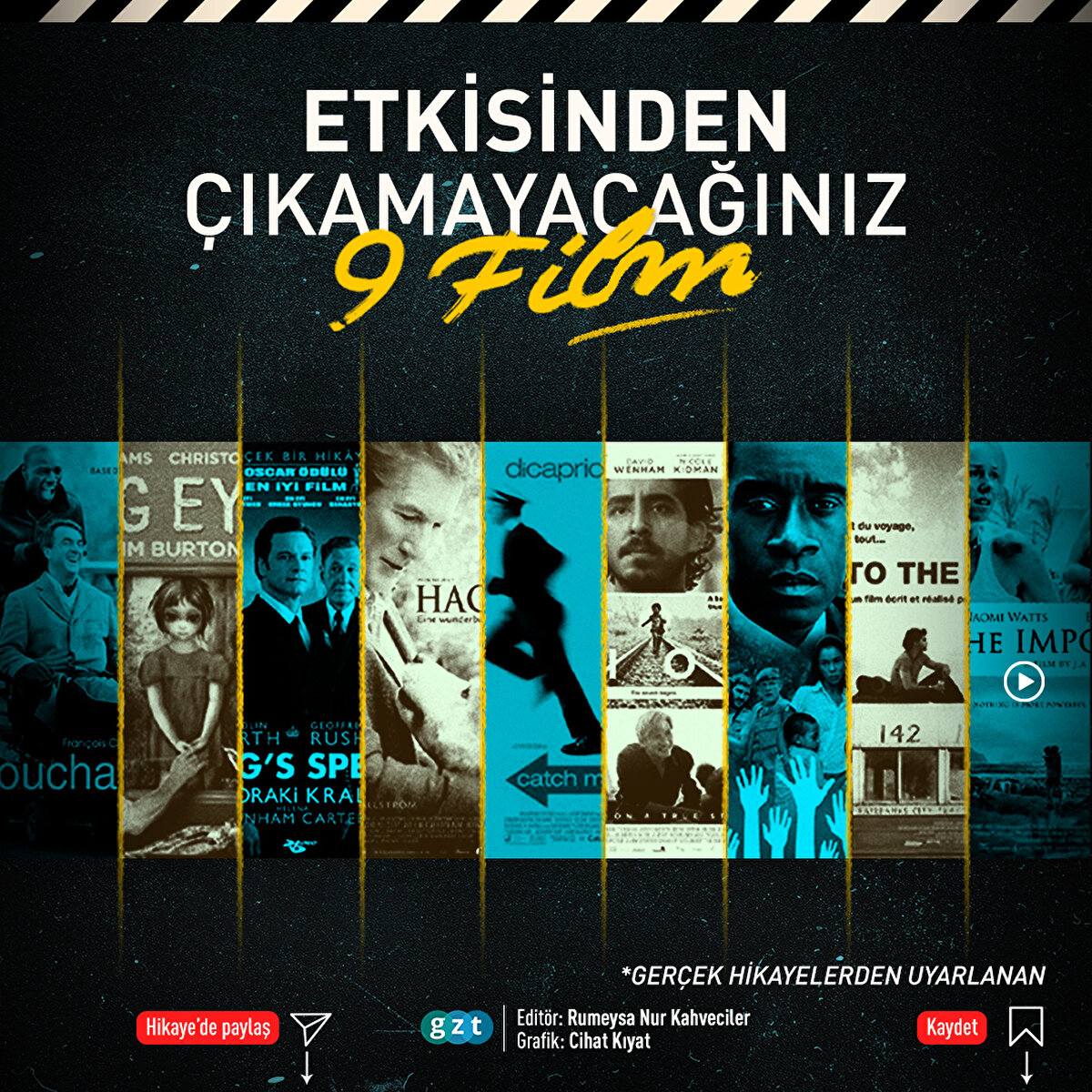 Siz de her akşam "Ne izlesek?" diye düşünenlerden misiniz? Eğer öyleyseniz, bu içerik imdadınıza yetişmeye geldi! Gerçek hayat hikayelerinden uyarlanan ve etkisinden uzun süre çıkamayacağınızı düşündüğğümüz 9 filmi sizler için sıraladık!