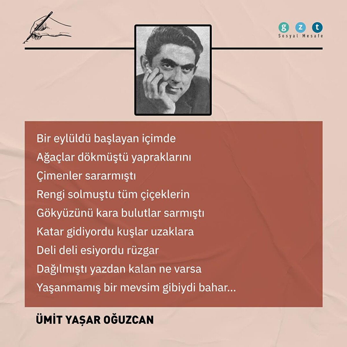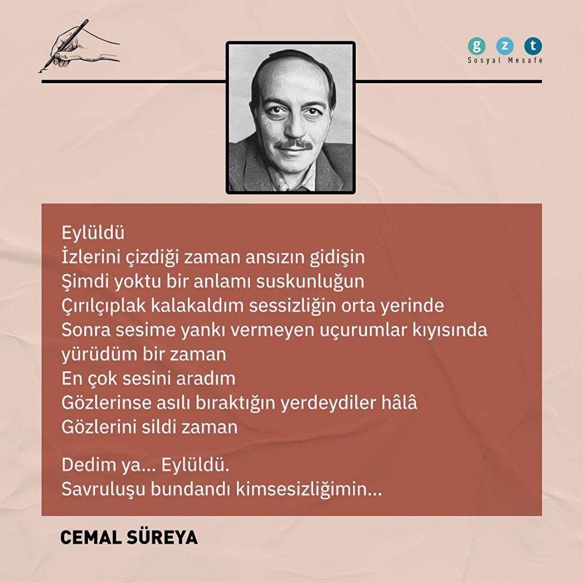 Cemal Süreya, Attila İlhan, Ümit Yaşar Oğuzcan, Hasan Basri Ünlü ve Ataol Behramoğlu'nun kaleminden Eylül şiirlerini sizin için derledik. İnfografik kapak resmini Ayşenur Özdemir çizdi...