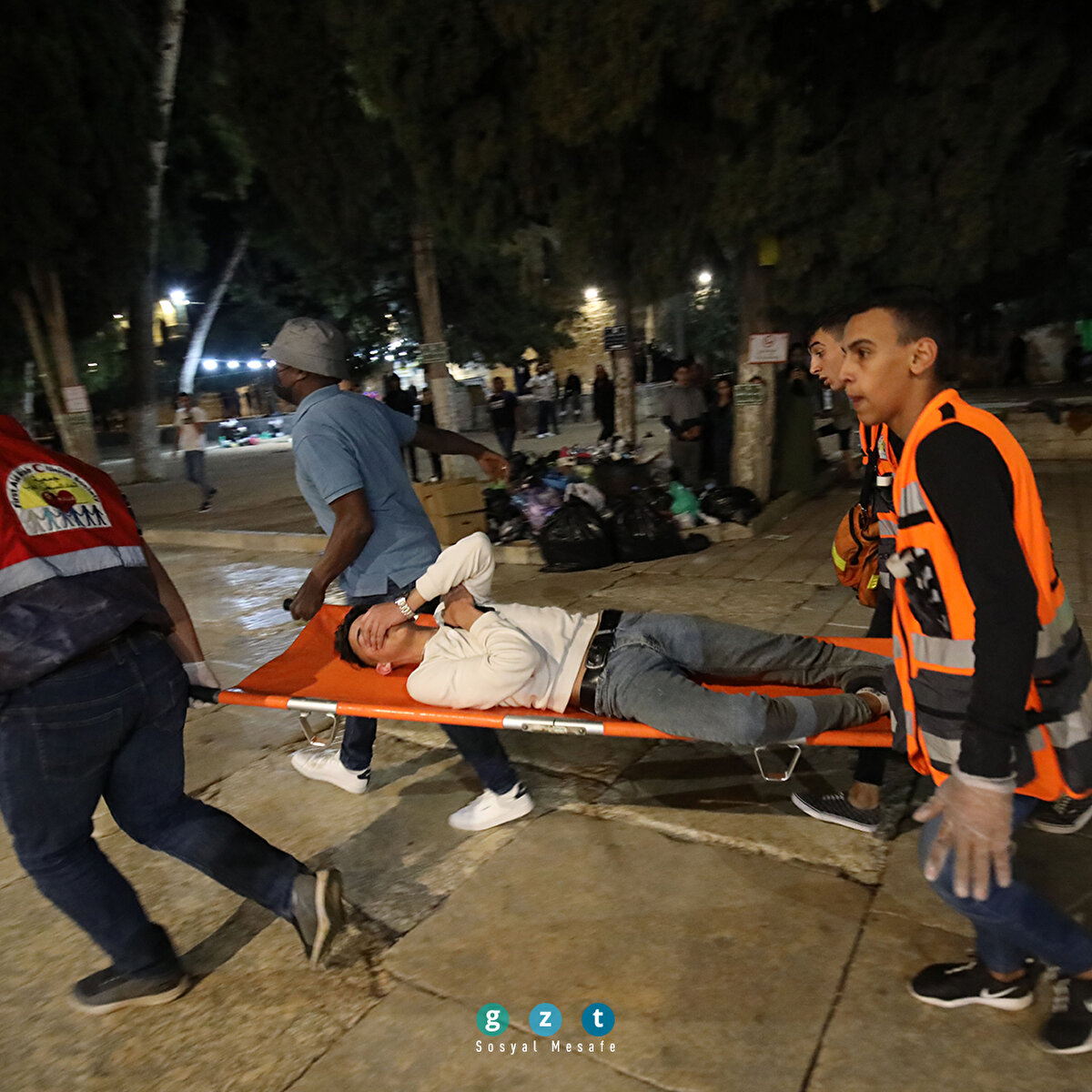İsrail güçlerinin teravih namazını kılmak üzere Mescid-i Aksa'ya gelen Filistinlilere yönelik gerçekleştirdiği saldırılar sonucu yaralananların sayısı 205'e ulaştı. İşgalci İsrail güçleri Kudüs'ün Eski Şehir bölgesinde bulunan Mescid-i Aksa'ya teravih namazını kılmak üzere gelen Filistinlilere saldırmış, Harem-i Şerif savaş alanına dönmüştü. Şam Kapısı ile Sahire Kapısında da saldırılarını sürdüren İsrail güçlerinin yaraladığı Filistinlilerin sayısı arttı. Filistin Kızılayı tarafından yapılan açıklamada, ses bombaları ve plastik mermilerin kullanıldığı saldırılarda yaralı sayısının 205'e yükseldiği, 88'inin hastanelere kaldırıldığı bildirildi. Plastik mermi kullanılması sonucu yaralanmaların çoğunun yüz ve göz bölgesinden olduğu, bilançonun giderek artması üzerine bölgede sahra hastanesi kurulduğu aktarıldı. Filistinli kaynaklar ise İsrail'in saldırısının ardından onlarca Filistinlinin gözaltına alındığını belirtti.