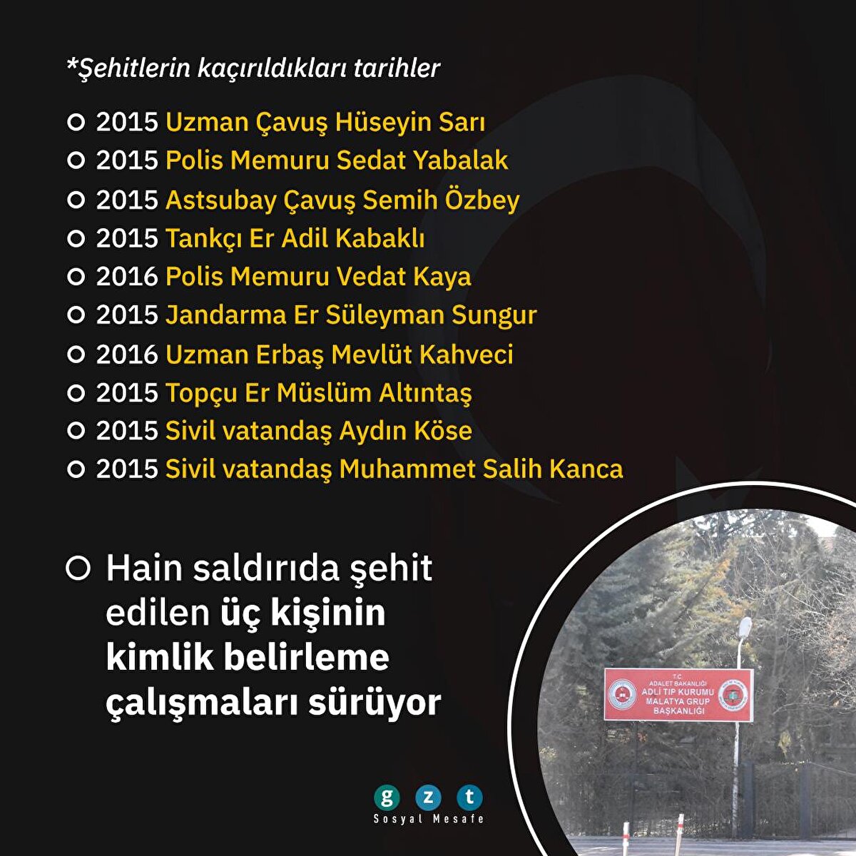 Malatya Valisi Aydın Baruş, Gara'da PKK tarafından şehit edilen 13 vatandaştan 10'unun kimliklerini açıkladı. Baruş üç kişinin kimlik tespit çalışmalarının sürdüğünü bildirdi. Vali Baruş, Gara'da şehit edilen 13 vatandaşın ne zaman kaçırıldığını da isimleriyle birlikte açıkladı.