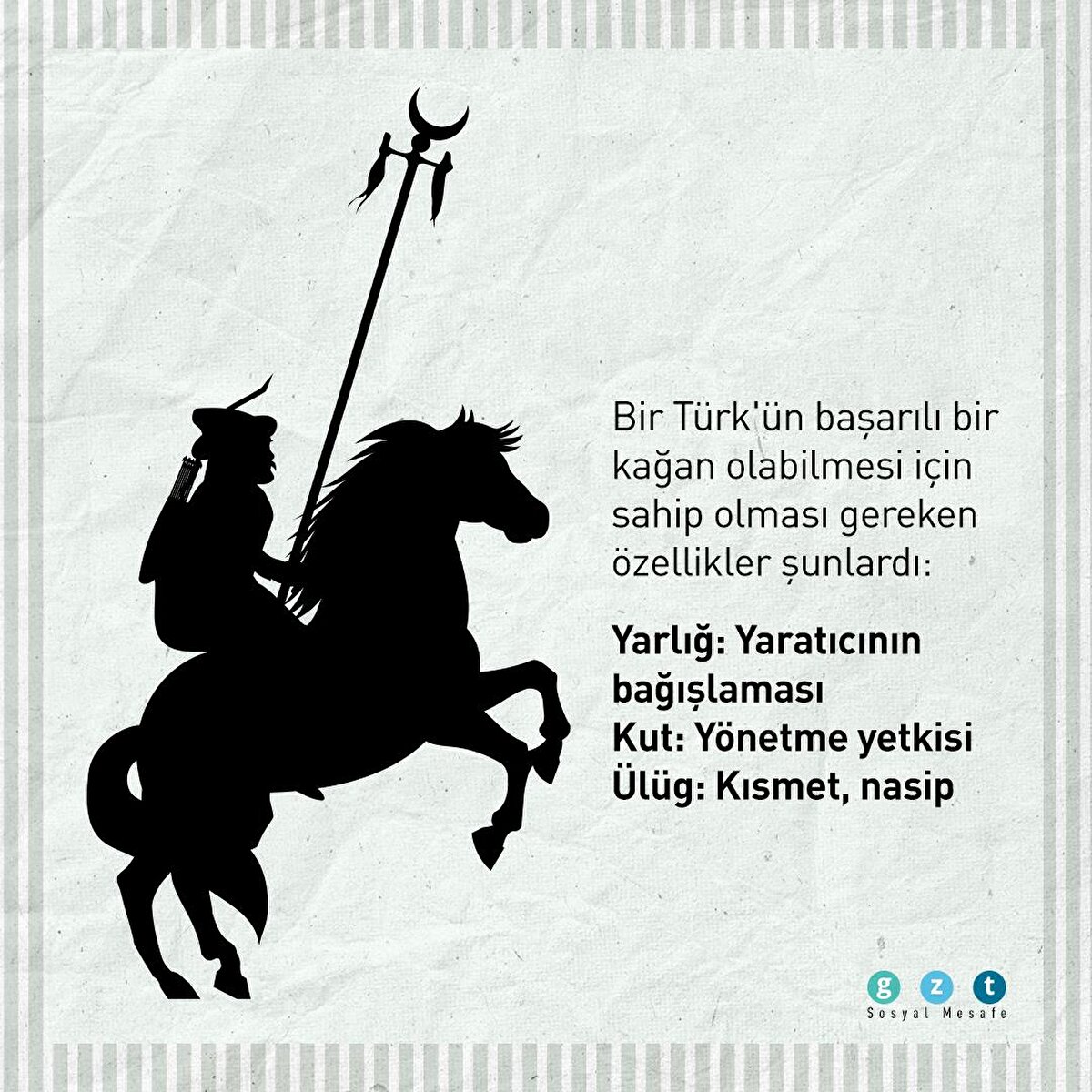 Gök Türklerde hükümdarın sahip olması gereken üç temel özellik; yarlığ, kut ve ülüg idi.