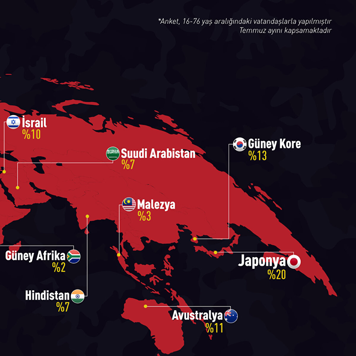 Ipsos, Dünyadaki Endişeler Raporu'nda 27 katılımcı ülkeden 16-74 yaş arası 20.022 yetişkinin katıldığı milletler arası çatışma korkusu temmuz raporuna da yer verdi.