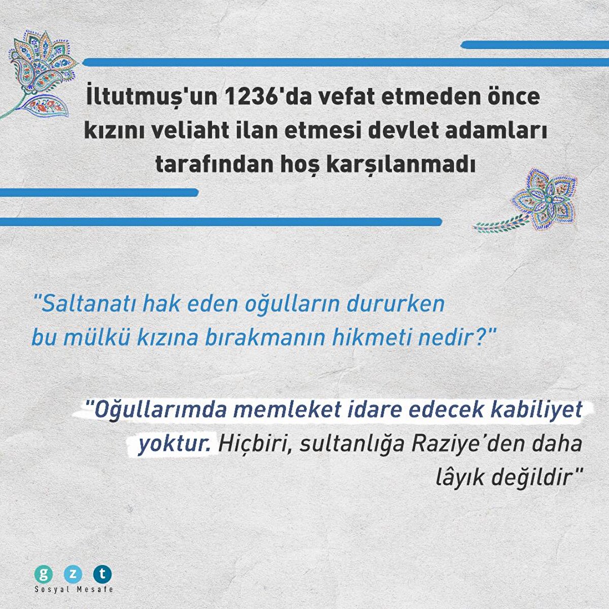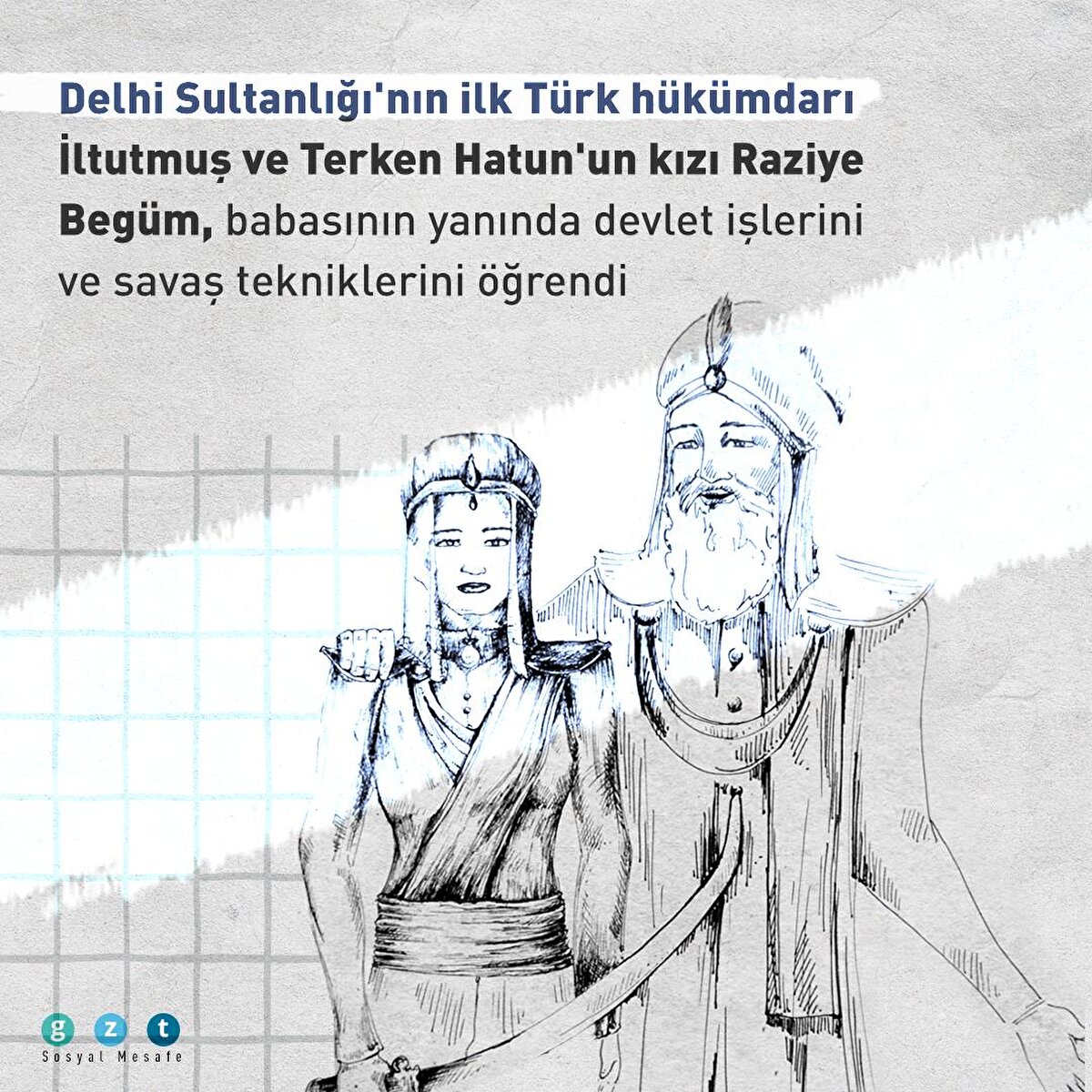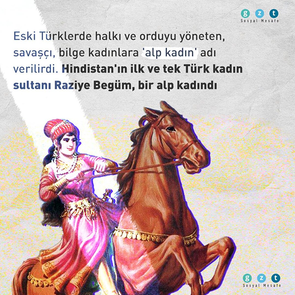 Eski Türklerin 'alp kadın' olarak nitelendirdikleri savaşçı kadınların Hindistan'daki en güçlü örneği Raziye Begüm Sultan'dı. Delhi Sultanlığı'nın hükümdarı İltutmuş'un kızı olan Raziye Begüm, babası tarafından veliaht ilan edilmesine rağmen devlet adamlarının tepkisiyle karşılaştı ve tahttan uzaklaştırıldı. Kardeşi Rükneddin Firuz Şah yönetimde başarısız olunca, Raziye Begüm Delhi Sultanı ilan edildi. Buna rağmen kadın olduğu için yönetimde söz sahibi olması birçok devlet adamını rahatsız ediyordu. Begüm Sultan, hakimiyetini kabul etmeyenlerin isyanlarını bastırsa da 1240'ta kardeşi Behram Şah'a yenilerek öldürüldü.