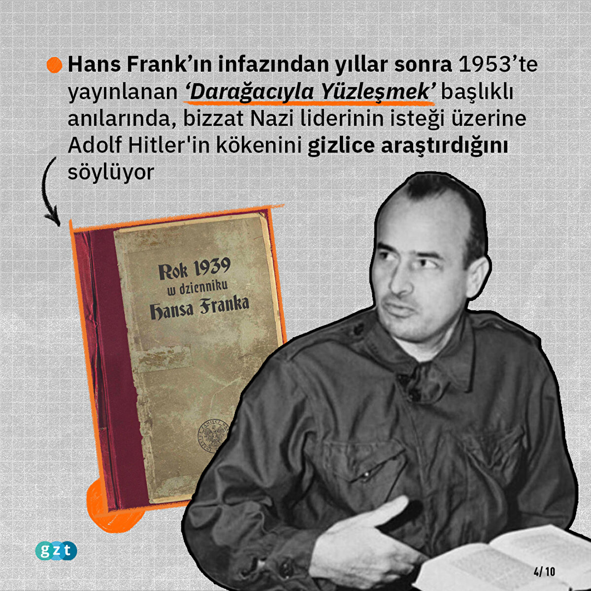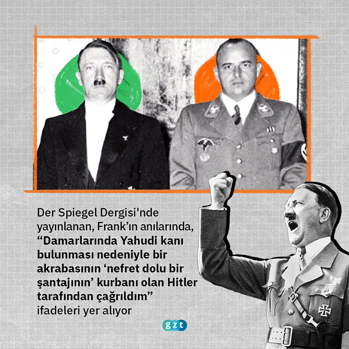 Hitler'in Nazi yoldaşı Hans Frank'in anılarındaki sır: Hitler'in dedesi Yahudi miydi? Geçtiğimiz aylarda Rusya Dışişleri Bakanı Sergey Lavrov'un Adolf Hitler için "Yahudi kanı taşıyordu" açıklamaları, 2. Dünya Savaşı'ndan önce doğan bu söylentileri tekrar akla getirmişti Adolf Hitler'in kişisel avukatı ve onun Nazi partisinin bir üyesi olan Hans Frank 'ın anılarındaki ilginç iddialar şüphe uyandırdı. Bu iddiaları ve nedenlerini derledik