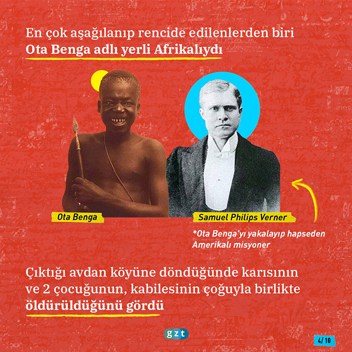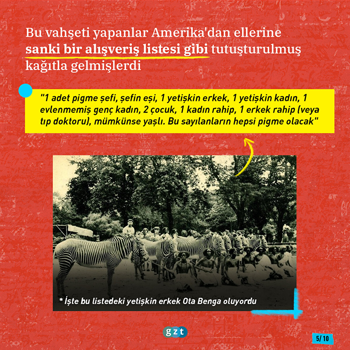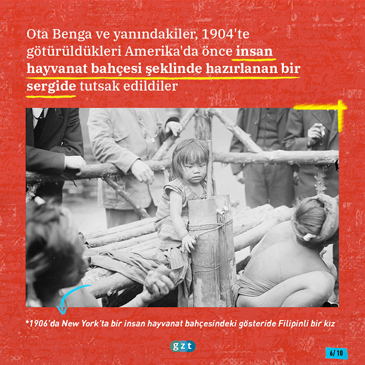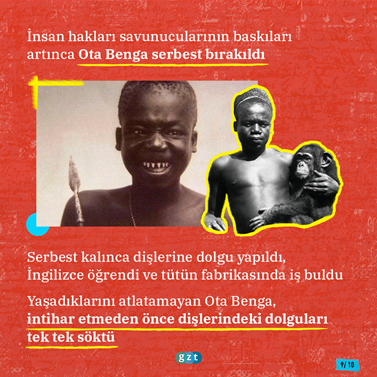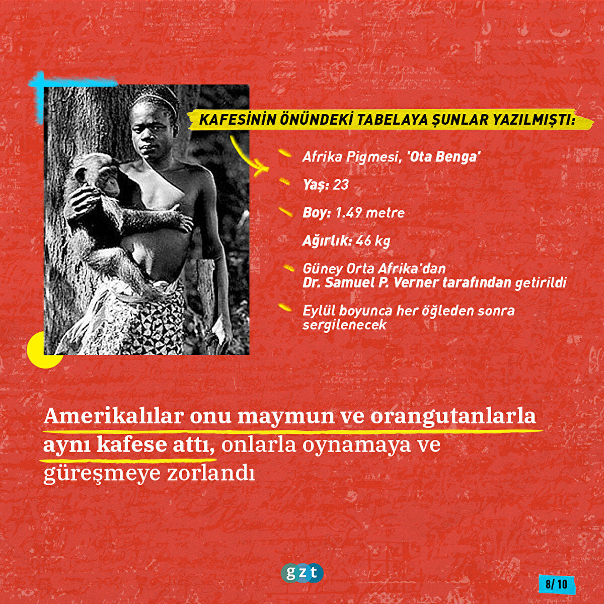 1900'lerin başlarına kadar tutsak edilen Afrikalılar, Kızılderililer, Aborjinler Avrupalılar tarafından hapsedilerek seyrediliyordu. En çok ilgiyi Afrikalılar çekiyordu. 1889'da Paris'de yarı çıplak şekilde sergilenen çoğunluğu Afrikalı 400 tutsağı, 18 milyon insan ziyaret etmişti. Kısa süre sonra Kuzey Amerika da bu kervana katıldı. İşte o insan hayvanat bahçelerinde tutsak edilen Ota Benga'nın hikayesi...