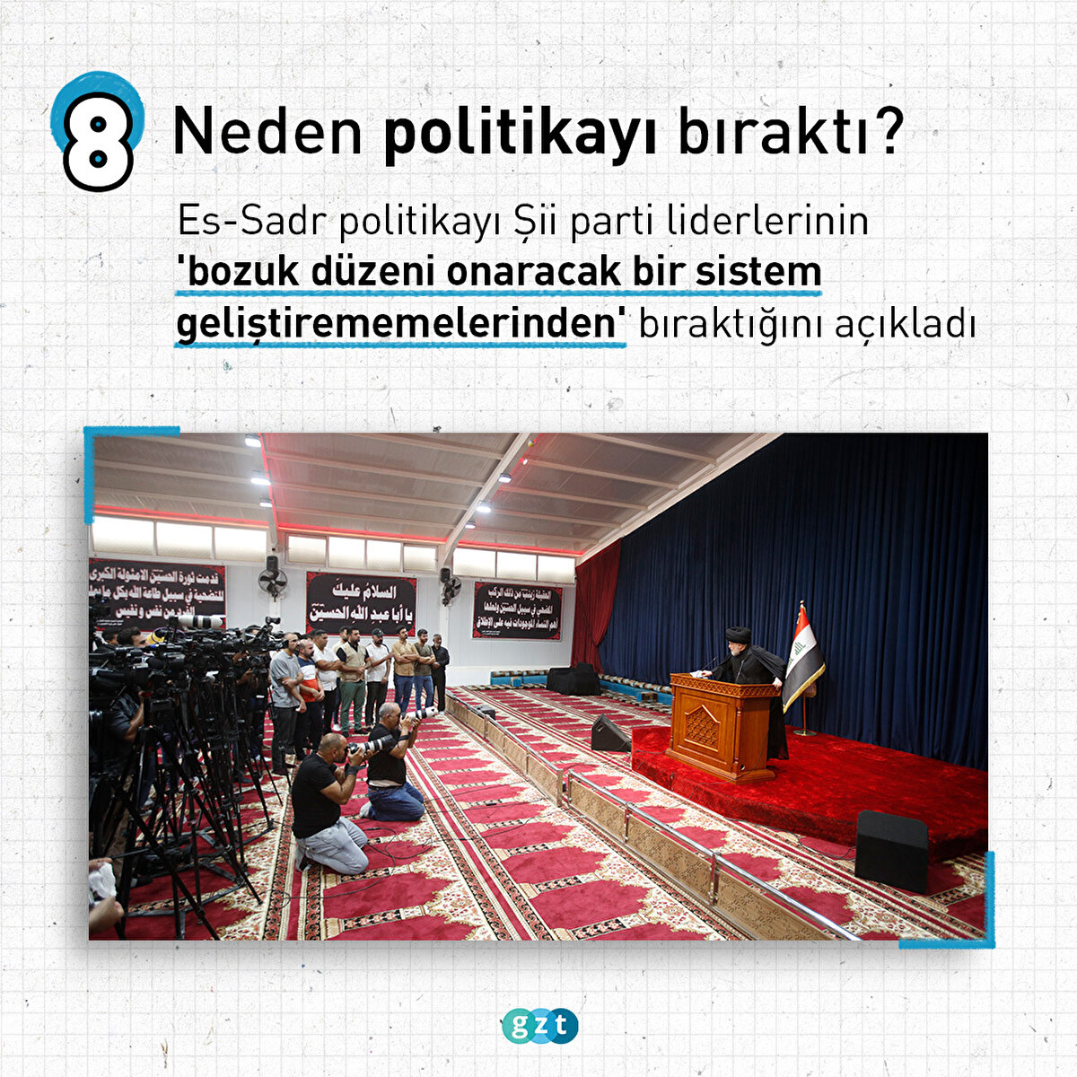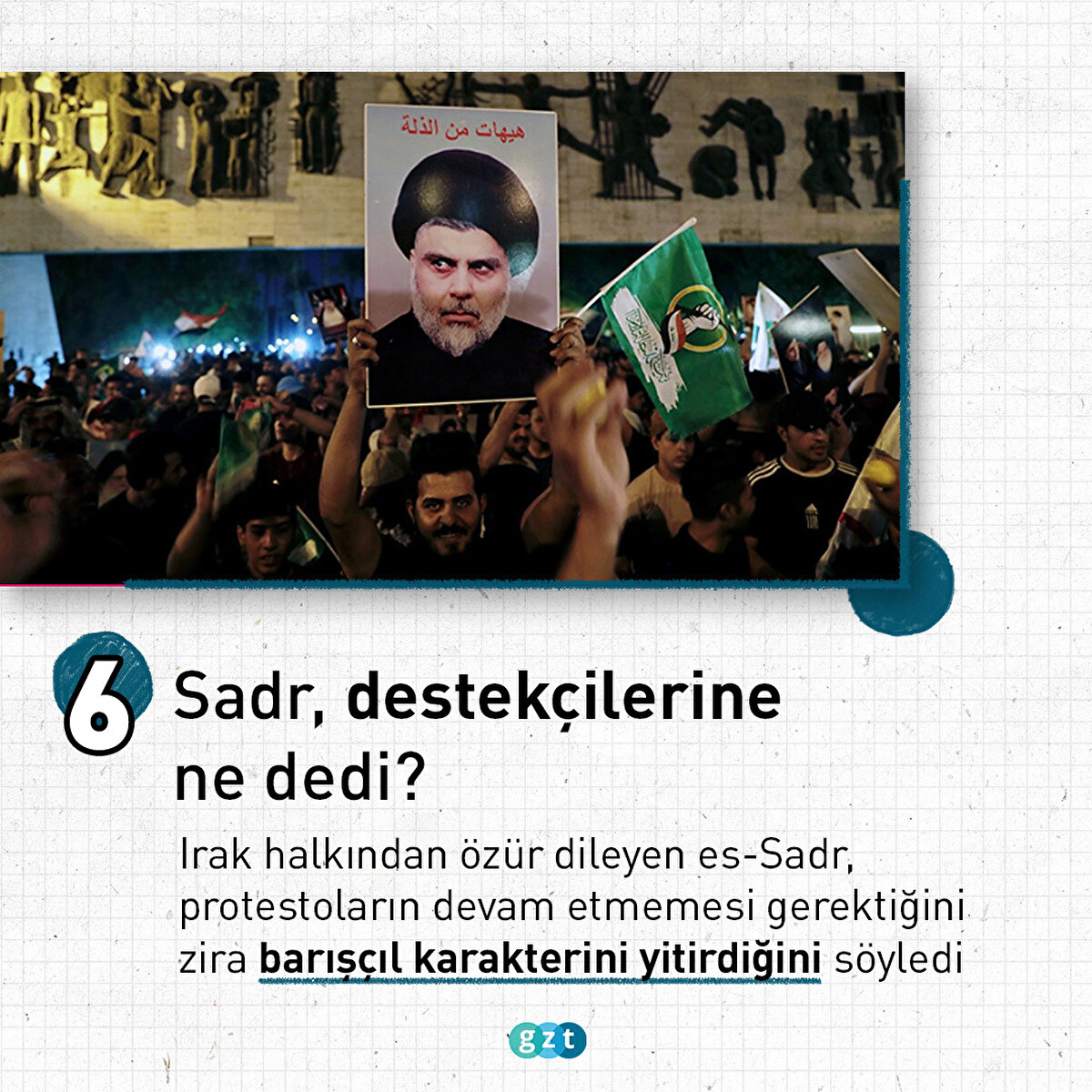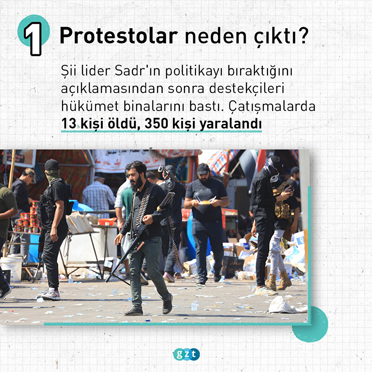 Irak'ta Şii lider Mukteda Es-Sadr politikayı bıraktığını açıkladıktan sonra başkent Bağdat karıştı. Sadr yanlıları, liderlerinin kararı sonrası hükümet ve cumhurbaşkanlığı sarayını bastı. Sadr destekçileri ile güvenlik güçleri arasındaki çatışmalarda 13 kişi öldü, 350 kişi yaralandı. Ülke genelinde sokağa çıkma yasağı ilan edilirken, Sadr açlık grevine başladığını duyurdu.