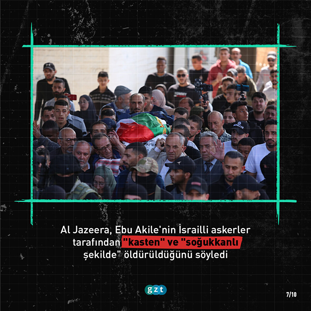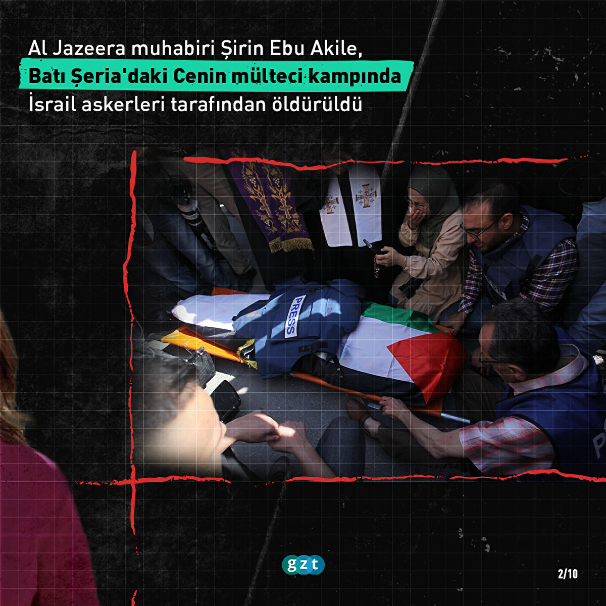 Al-Jazeera televizyon kanalının muhabiri Şirin Ebu Akile, Batı Şeria'nın Cenin Mülteci Kampı'nda İsrail askerleri tarafından açılan ateş sonucu yaşamını yitirdi. İsrail ordusundan yapılan yazılı açıklamada ise olayla ilgili inceleme başlatıldığı belirtildi. Sosyal medyada yayınlanan görüntülerde ise vurulmasının ardından kanlar içinde bir araca bindirilen Akile'nin çelik yelek giydiği görülüyor. İsrail askerlerinin öldürdüğü Şirin Ebu Akile kimdir?