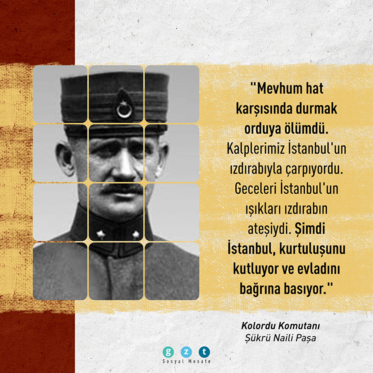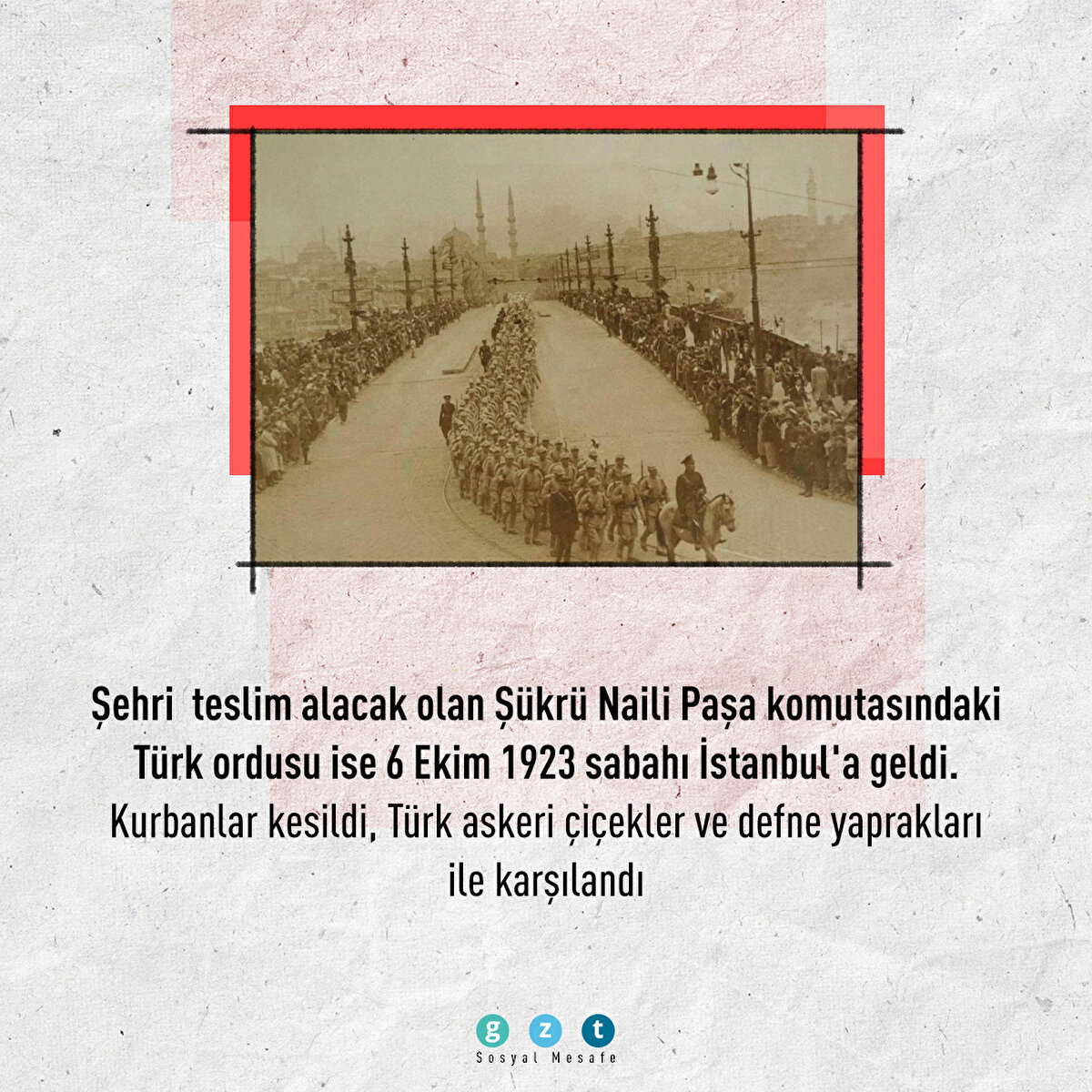 İstanbul'un İtilaf Devletleri tarafından işgali 1918'de başladı ve şehir 1923'te Gazi Mustafa Kemal Paşa önderliğindeki Türk ordusu tarafından kurtarılıncaya dek halk büyük üzüntü yaşadı. Sokaklarda dolaşan İtilaf kuvvetleri, 6 Ekim 1923'te İstanbul'dan tamamen çekilmek zorunda bırakıldılar. Şehre giriş yapan ilk Türk birliği ise Milli Mücadele sürecinde Anadolu'daki başarılarıyla bilinen Demir Fırka oldu. İstanbul halkı, şehri kurtaran Türk ordusunu çiçekler, bayraklar ve tezahüratlar ile karşıladı. Sirkeci'de kurbanlar kesildi, Erenköy, Suadiye ve pek çok farklı yerde ziyafetler verildi. Kolordu Komutanı Şükrü Naili Paşa, bu sevinci şöyle aktardı: "Şimdi İstanbul, kurtuluşunu kutluyor ve evladını bağrına basıyor."