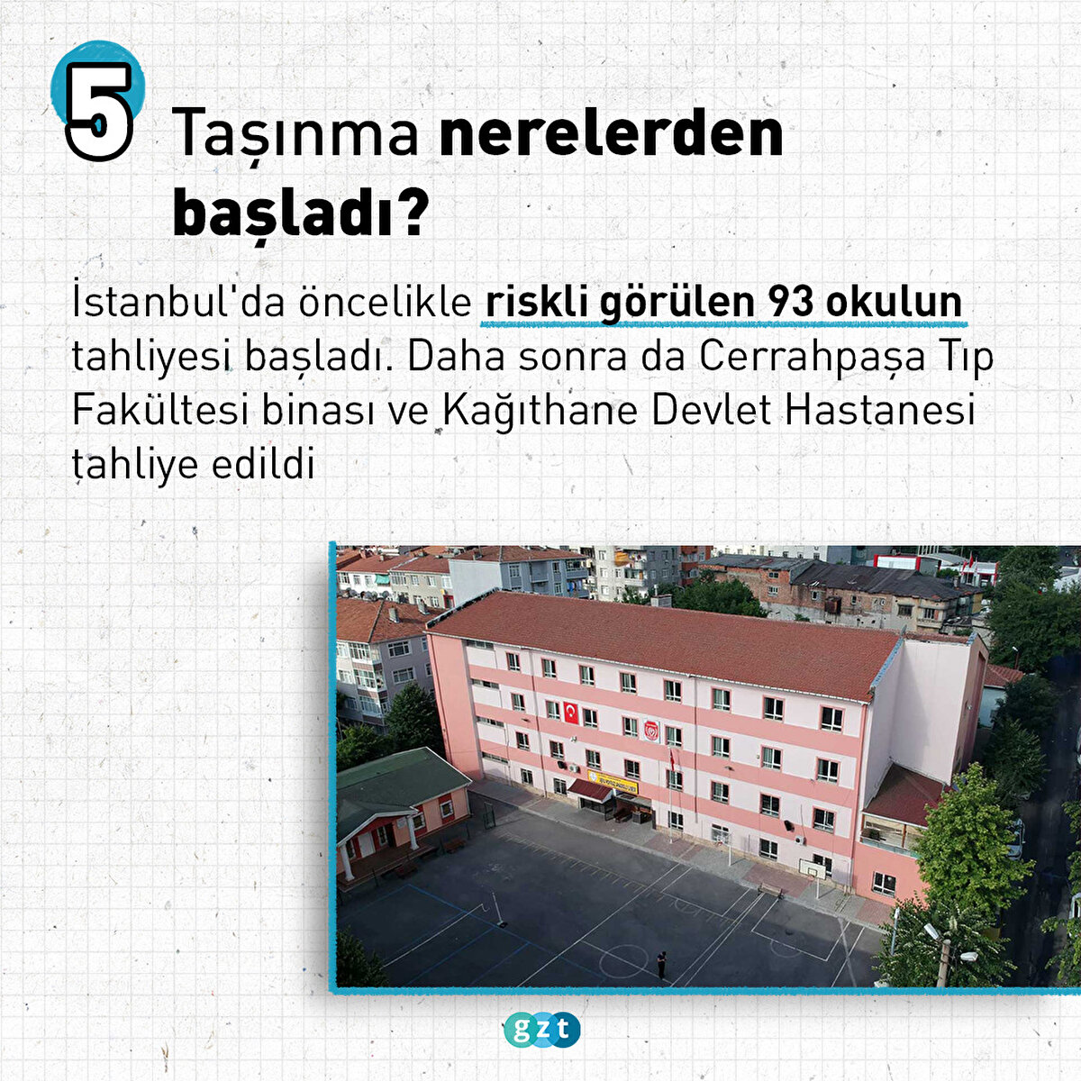 Çevre, Şehircilik ve İklim Değişikliği Bakanı Murat Kurum, "İstanbul'da 1,5 milyon riskli konutu belirlediğimiz iki rezerv alana, hem Anadolu hem Avrupa yakasına taşıyacağız" dedi. Geçtiğimiz günlerde İstanbul'daki okullarda hasar tespit çalışması yapılmış 93 okulun acil tahliyesine karar verilmişti. Hastanelerden de Cerrahpaşa Tıp Fakültesi ve Kağıthane Devlet Hastanesi'nin de acil olarak tahliyesi kararlaştırılmıştı.