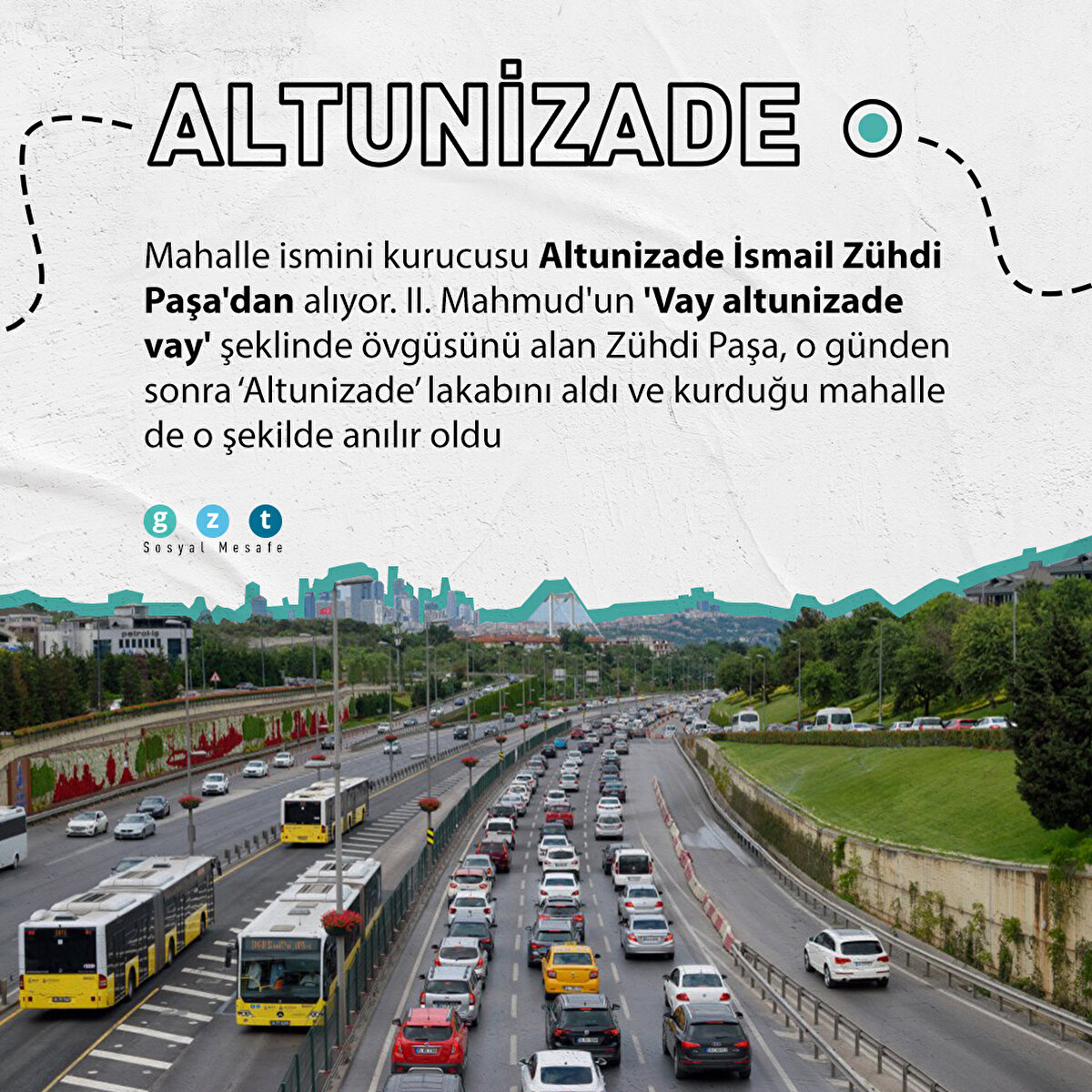 ALTUNİZADE Mahalle ismini kurucusu Altunizade İsmail Zühdi Paşa'dan alıyor. II. Mahmud'un 'Vay altunizade vay' şeklinde övgüsünü alan Zühdi Paşa, o günden sonra Altunizade lakabını aldı ve kurduğu mahalle de o şekilde anılır oldu