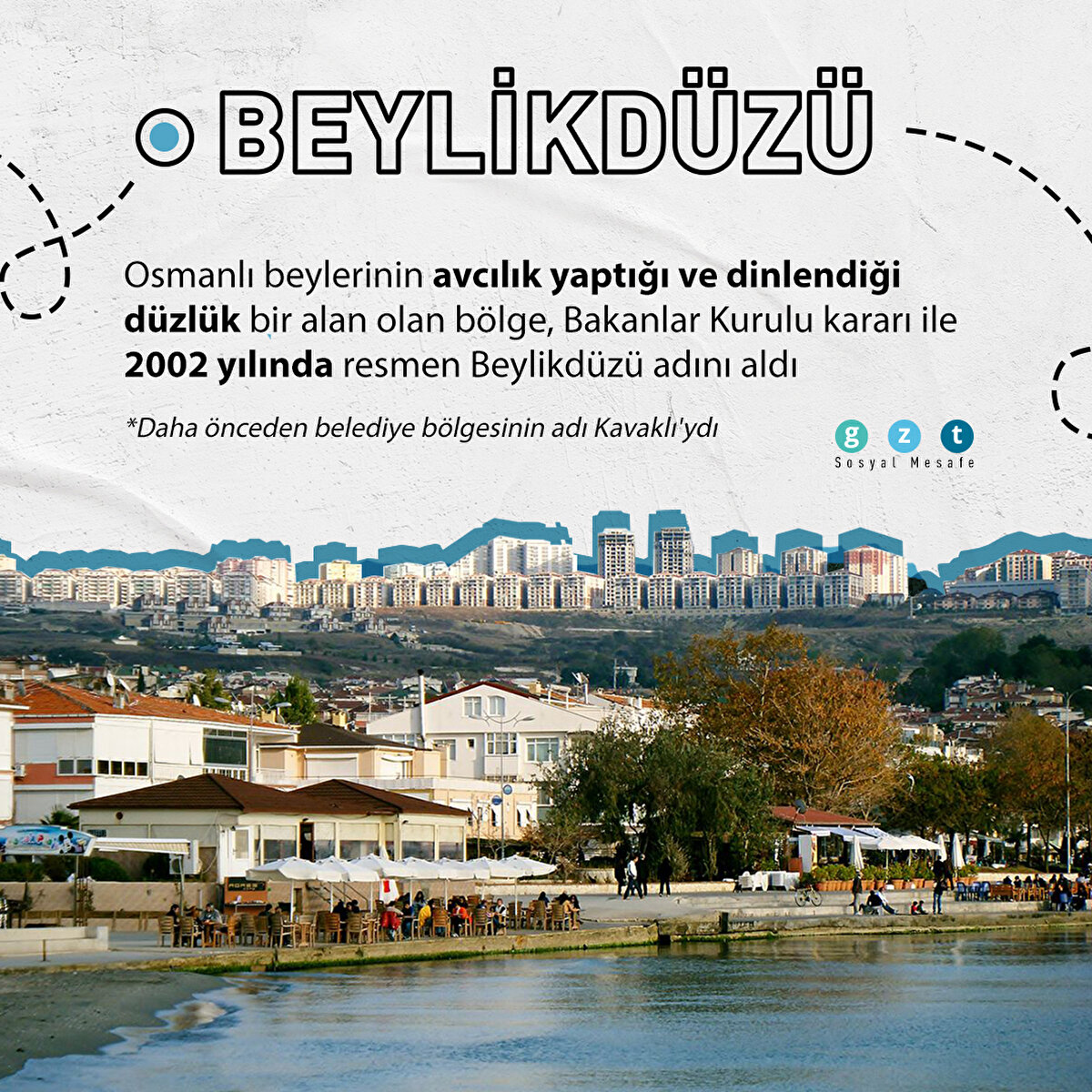 BEYLİKDÜZÜ Osmanlı beylerinin avcılık yaptığı ve dinlendiği düzlük bir alan olan bölge, Bakanlar Kurulu kararı ile 2002 yılında resmen Beylikdüzü adını aldı *Daha önceden belediye bölgesinin adı Kavaklı'ydı
