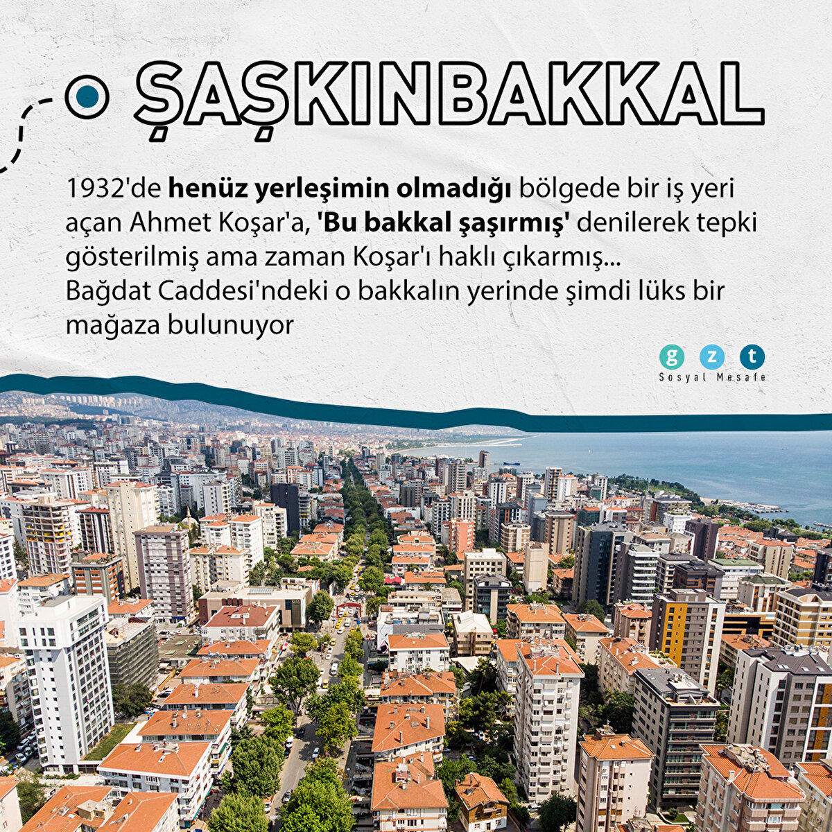 ŞAŞKINBAKKAL 1932'de henüz yerleşimin olmadığı bölgede bir iş yeri açan Ahmet Koşar'a, 'Bu bakkal şaşırmış' denilerek tepki gösterilmiş ama zaman Koşar'ı haklı çıkarmış... Bağdat Caddesi'ndeki o bakkalın yerinde şimdi lüks bir mağaza bulunuyor