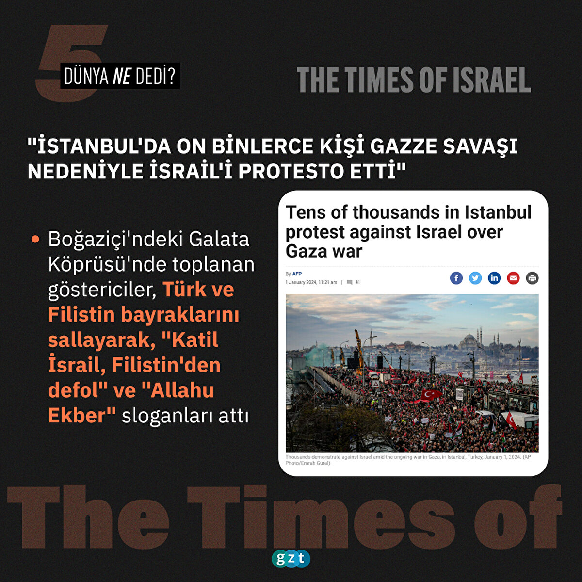 Dünyanın gözü İstanbul'daki "Şehitlerimize Rahmet, Filistin'e Destek, İsrail'e lanet" buluşmasındaydı. On binlerce kişinin katıldığı yürüyüş uluslararası basında da manşetlerdeydi.