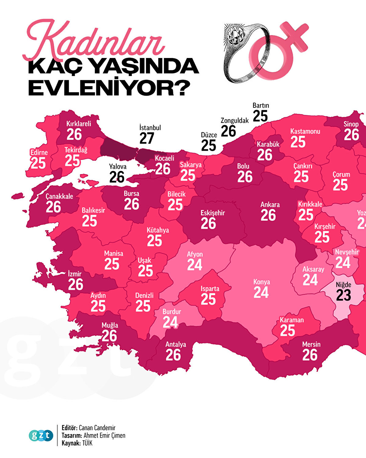 Türkiye'de kadınlar kaç yaşında evleniyor sizler için derledik...