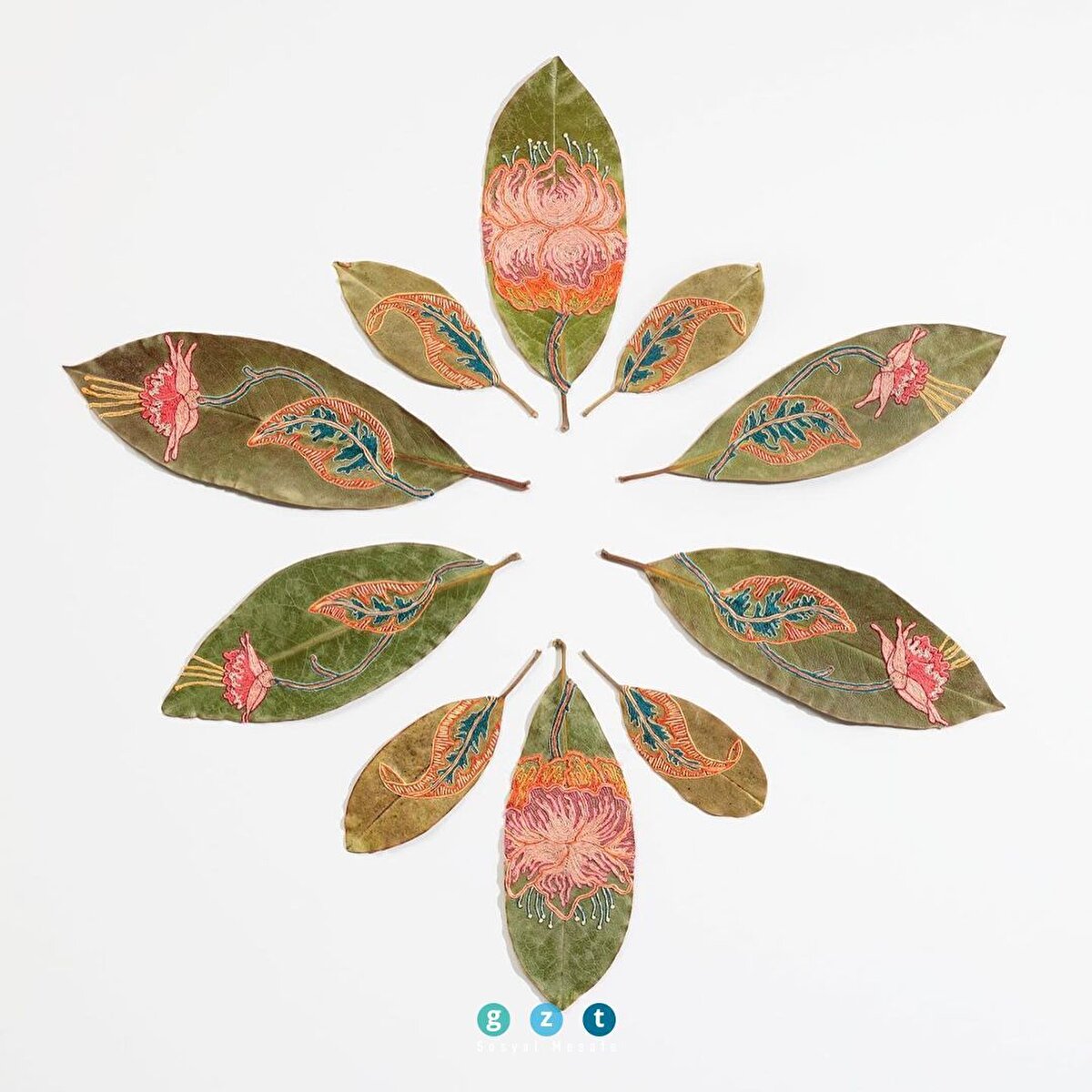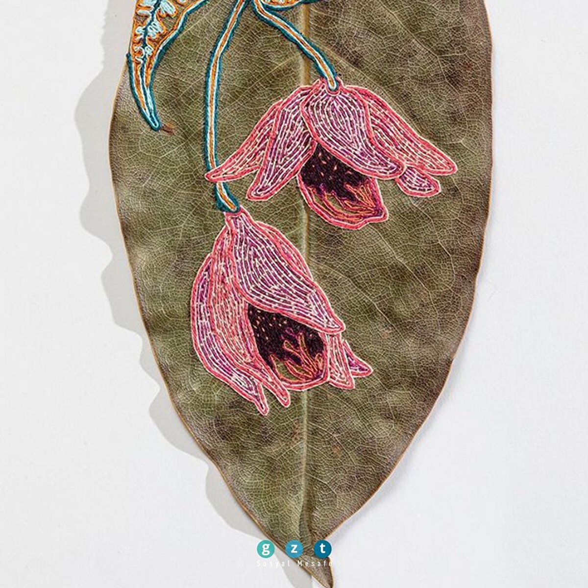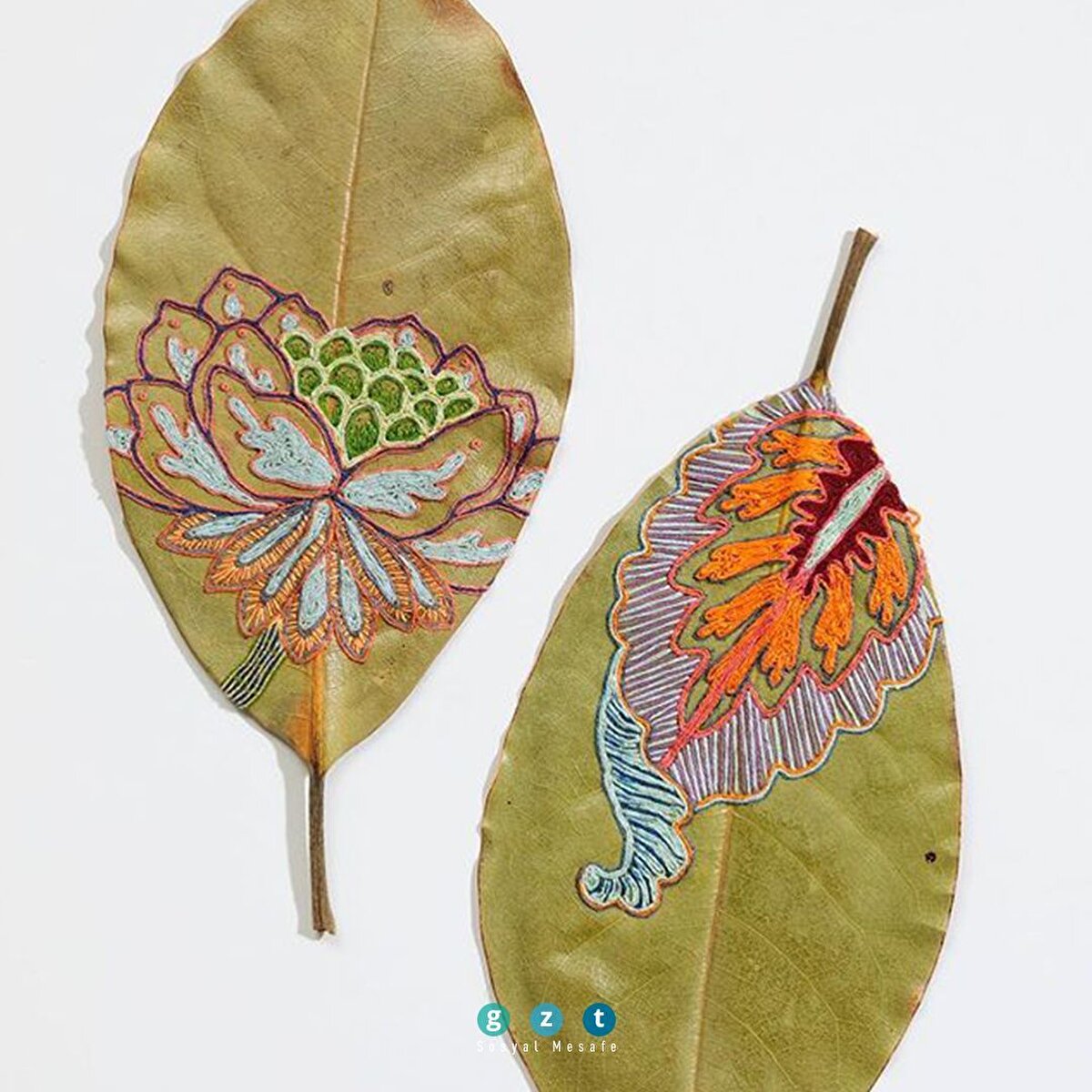 Kurutulmuş yaprakları süsleyen işlemeler