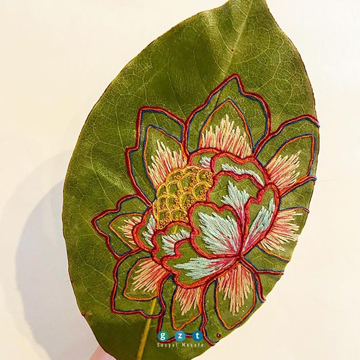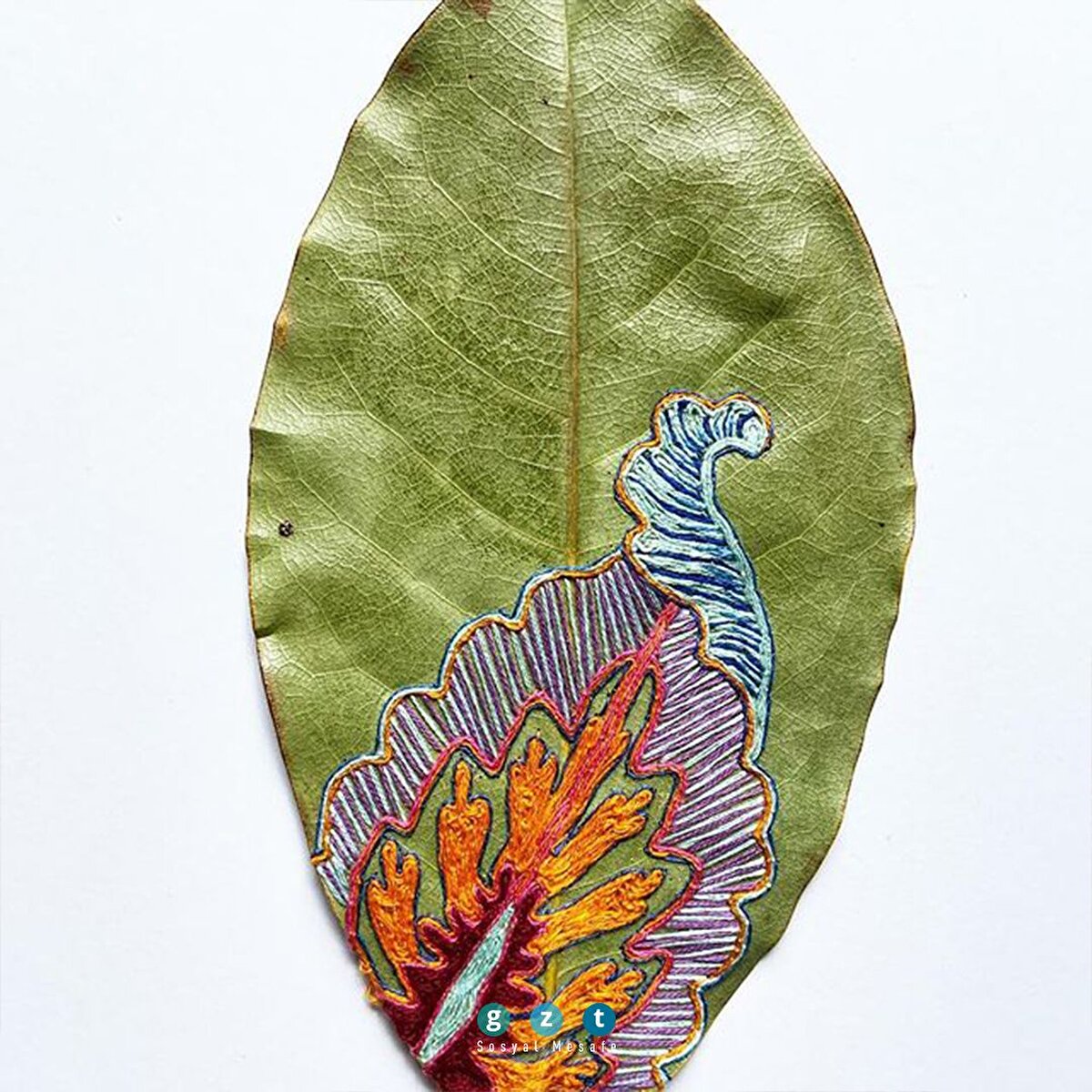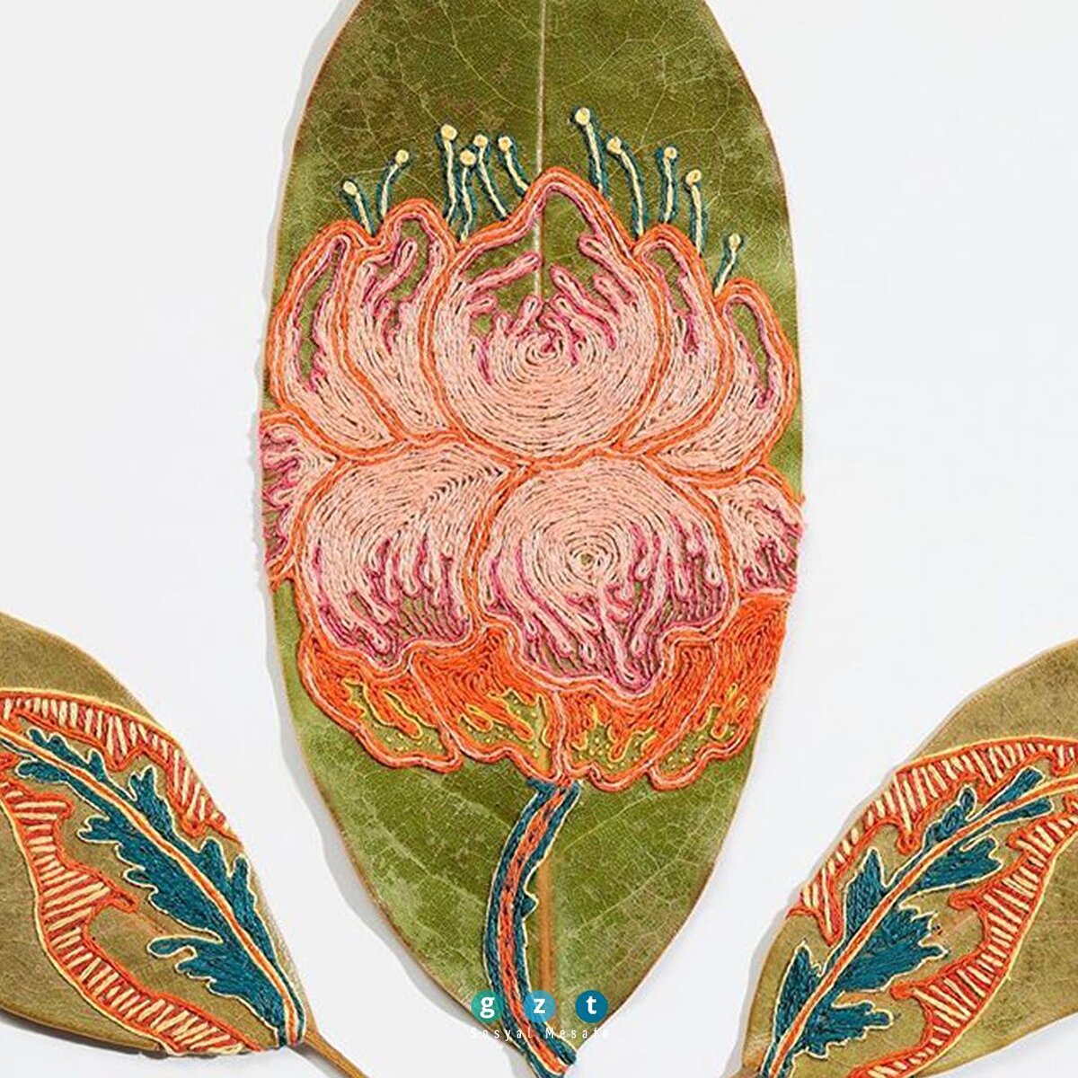 Kurutulmuş yaprakları süsleyen işlemeler