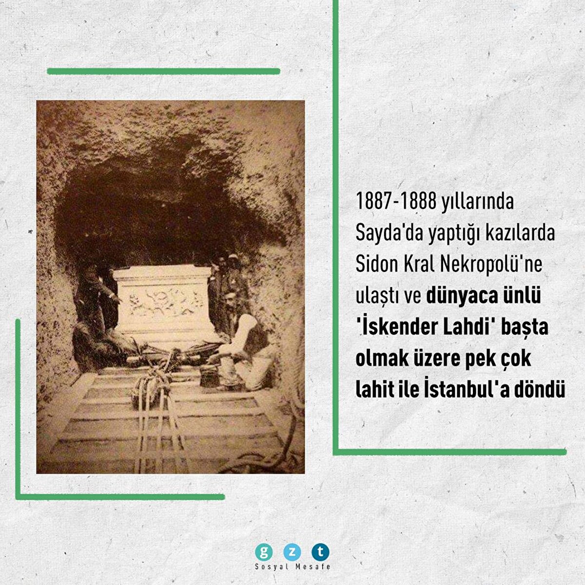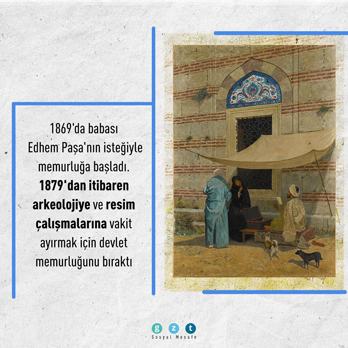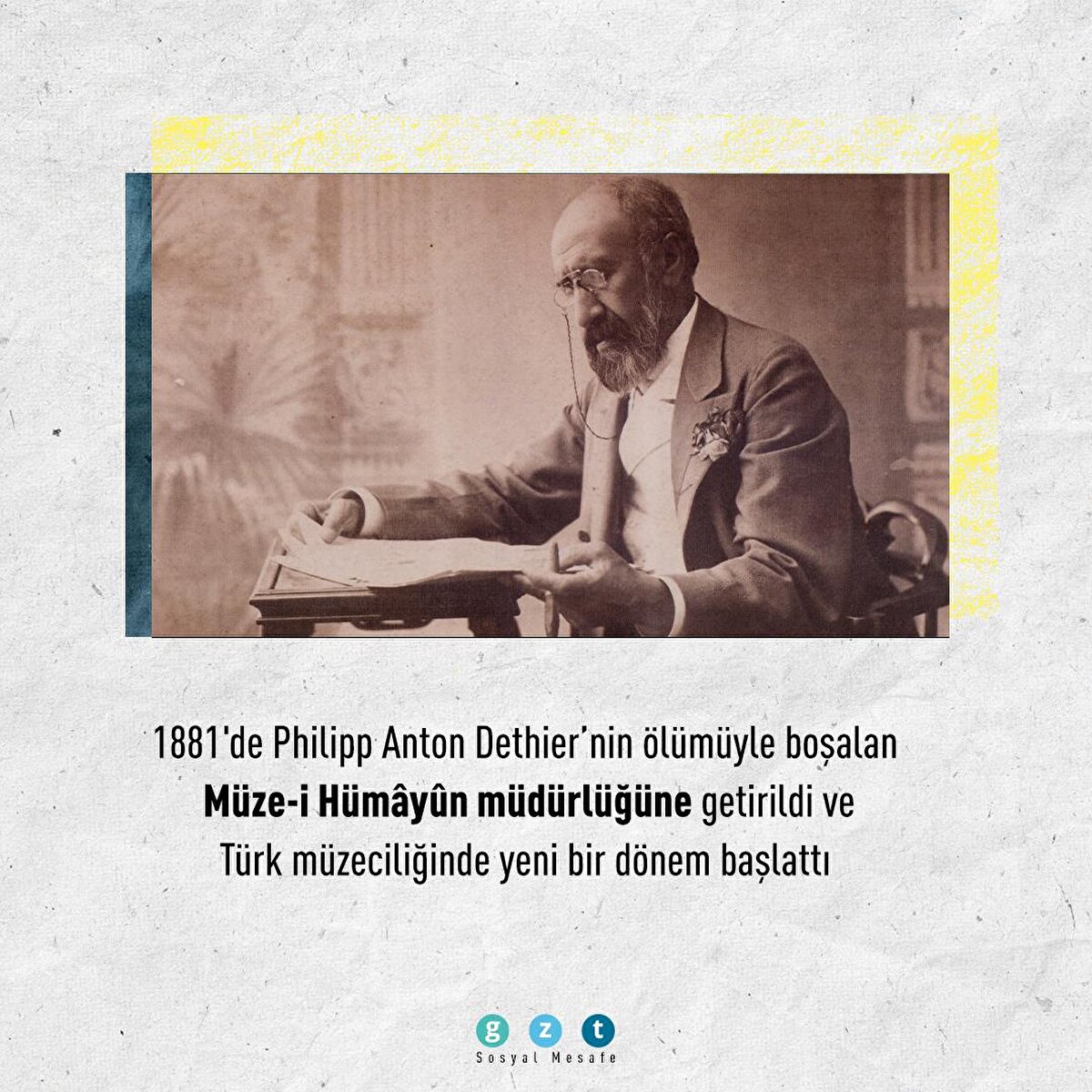 Kaplumbağa Terbiyecisi veya Mimozalı Kadın gibi meşhur eserlerini bildiğimiz Osman Hamdi Bey, aynı zamanda bir arkeolog ve müzebilimciydi. Paris'te aldığı hukuk eğitimini yarıda bırakarak küçük yaştan itibaren ilgi duyduğu resme yöneldi. Bir süre çeşitli devlet işlerinde görev aldıktan sonra sanatına daha çok vakit ayırmak istediği için memuriyeti bıraktı. 1881'de Müze-i Hümayun'un müdürü olarak atanması, Türk müzeciliğinde yeni bir devrin kapılarını açtı. Eserlerin korunması, depolanması ve yurt dışına götürülmelerinin önlenmesi için çabaladı. İstanbul Arkeoloji Müzesi'ni ve ilk güzel sanatlar okulumuz olan Sanayi-i Nefise Mektebi'ni kurdu. Katıldığı kazılarda bulduğu eserler bugün hala İstanbul Arkeoloji Müzeleri'nde sergileniyor.