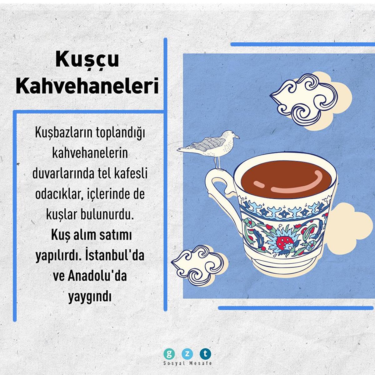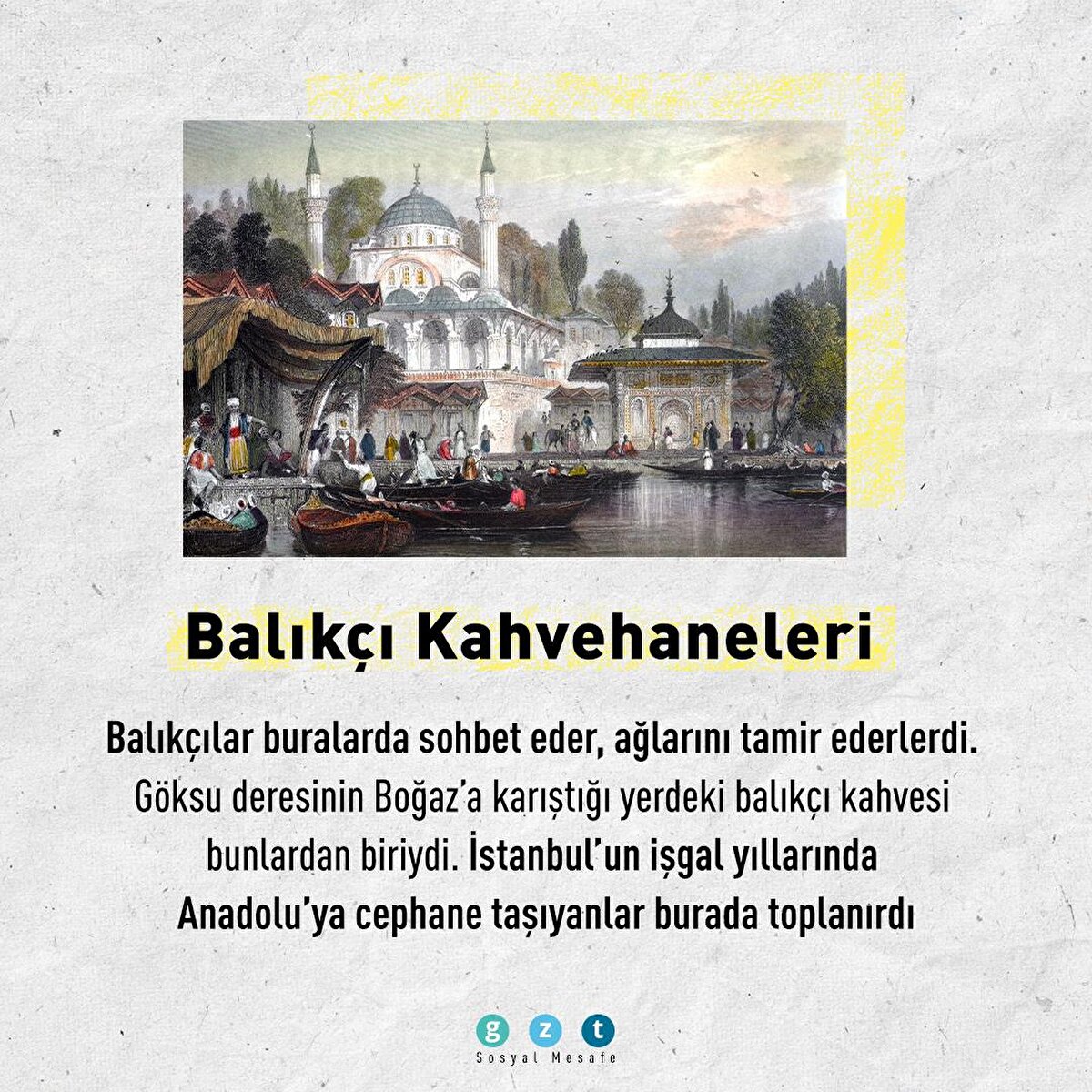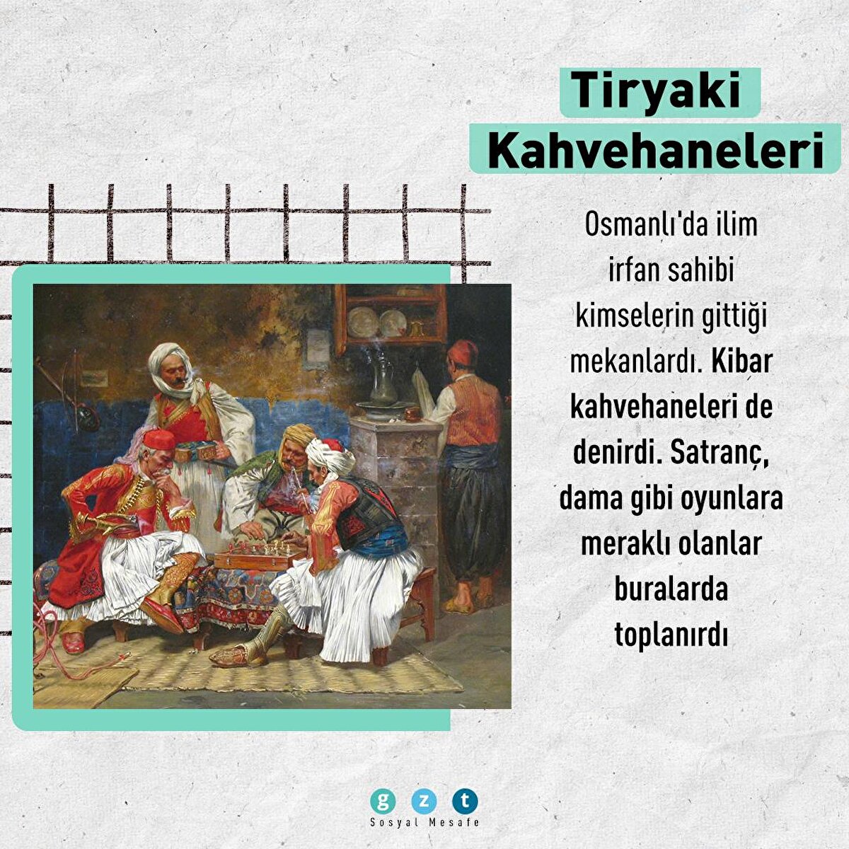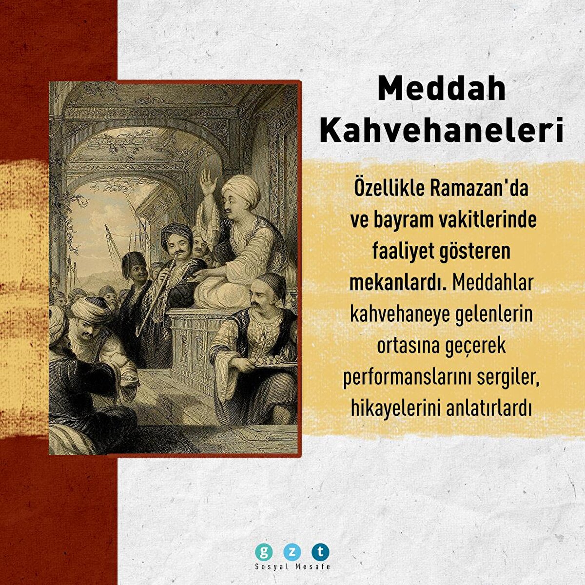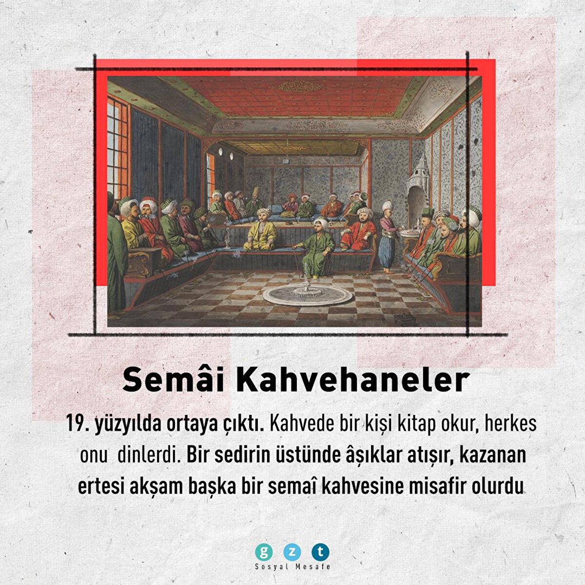 Osmanlı İmparatorluğu'nda özellikle 16. yüzyıldan itibaren kahvehaneler sosyal yaşamın en önemli unsurlarından biri haline geldi. İnsanların toplanıp sohbet ettiği, bilgi alışverişinde bulunduğu, önemli meseleleri tartıştığı mekanlar kahvehanelerdi. Bu mekanlar mesleklere ve ilgi alanlarına göre de ayrılmıştı. Yeniçeri kahvehaneleri, kuşçu kahvehaneleri, balıkçı kahvehaneleri veya meddah kahvehaneleri bunlardan yalnızca birkaçıydı.