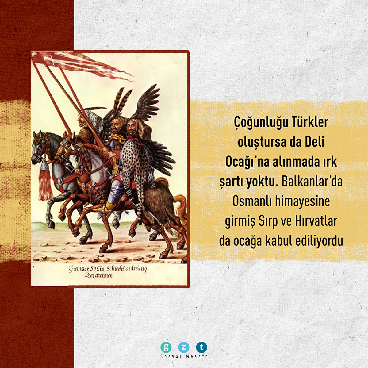 Deli Ocağı, Osmanlı'nın Balkanları fethiyle ortaya çıktı ve yüzyıllar boyunca Avrupa'ya korku saçtı. Tuhaf giyimleri, cesaretleri ve güçleri ile meşhur olan Deliler, ocağa girebilmek için belli şartları yerine getirmek zorundalardı. Savaş meydanında korkusuzluğunu ispat etmek ve dayanıklı bir fiziki yapıya sahip olmak öncelikli kurallardandı. Ocağa alınırken hiçbir savaştan kaçmayacaklarına dair yemin etmeleri gerekirdi. Genellikle Türkler sayıca fazla olsa da, ocağa kaydolmak için herhangi bir ırka mensup olma kuralı yoktu. Osmanlı'nın korkusuz askerlerini birkaç maddede anlattık.