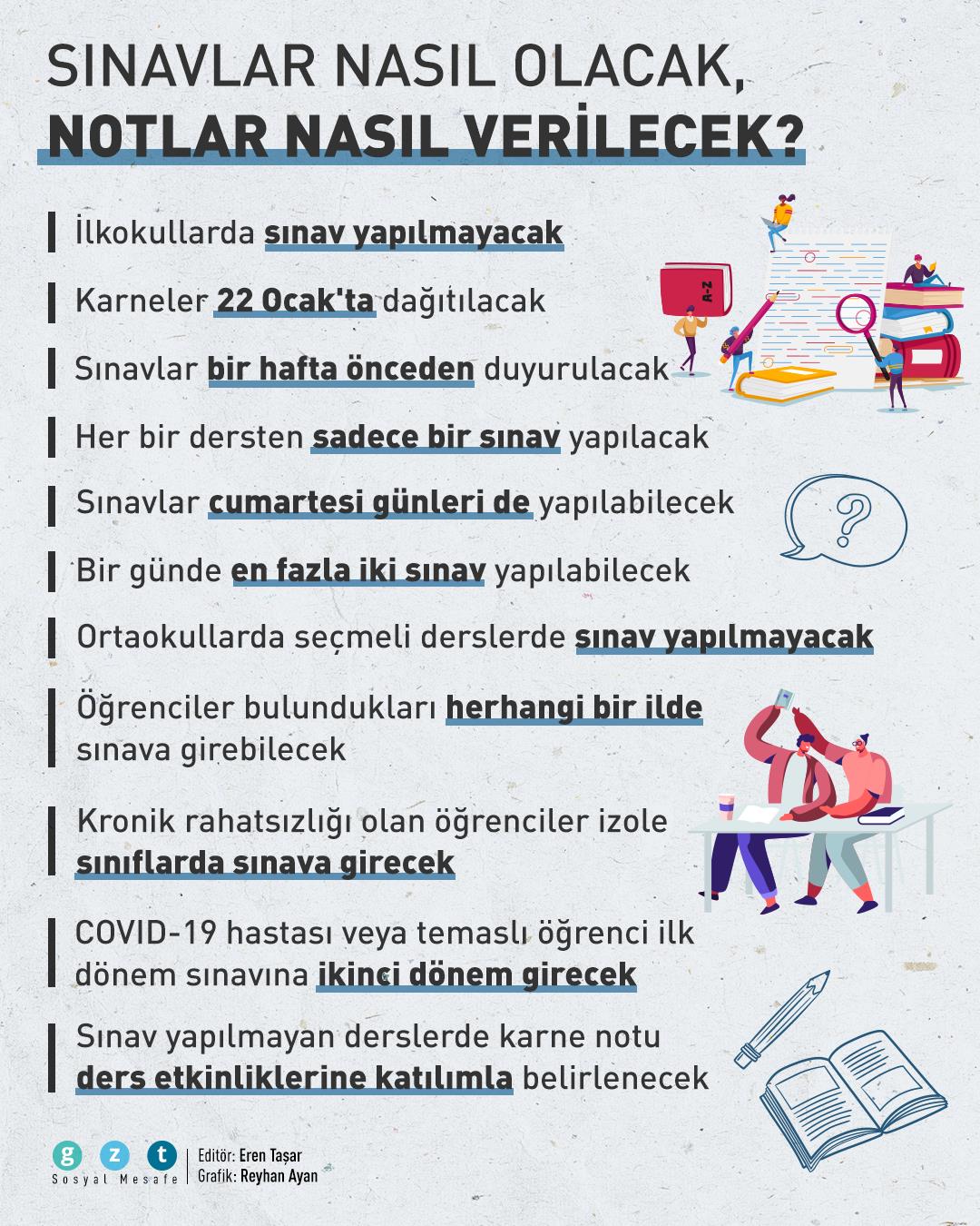 Milli Eğitim Bakanlığı koronavirüs salgını sebebiyle ilk 2020-2021 eğitim öğretim yılının ilk dönemini uzaktan eğitimle tamamlama kararı aldı. Eğitim sisteminin sil baştan yazıldığı pandemi döneminde notları da yalnızca sınavlar değil farklı kriterler belirleyecek.