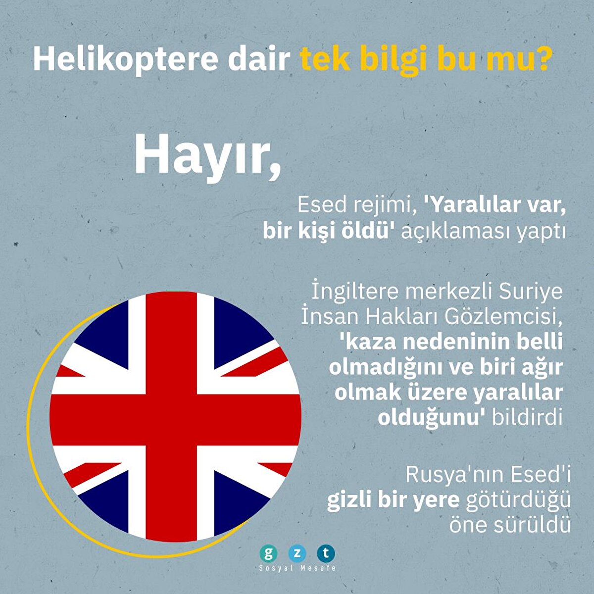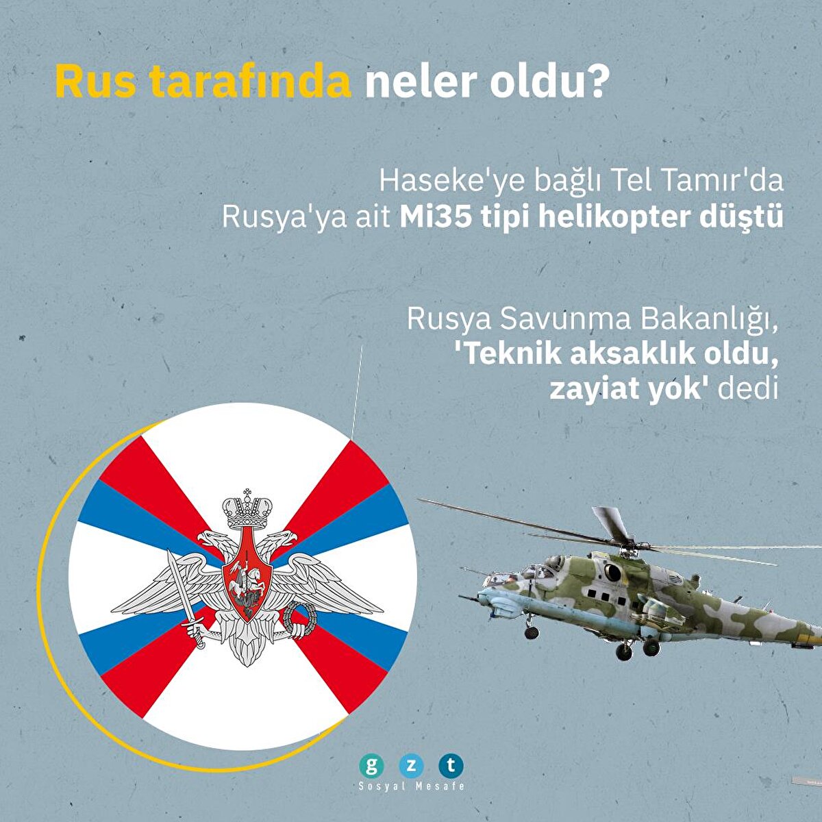 Suriye'de dün gece hareketli saatler yaşandı. Ülkenin kuzeyinde Rusya'ya ait Mi35 tipi helikopter düştü. Rusya Savunma Bakanlığı kayıp verilmediğini söylese de farklı kaynaklar yaralılar ve ölü olduğunu bildirdi. Öte yandan Esed rejimi İsrail'in Şam'a hava saldırısı düzenlediğini öne sürdü.