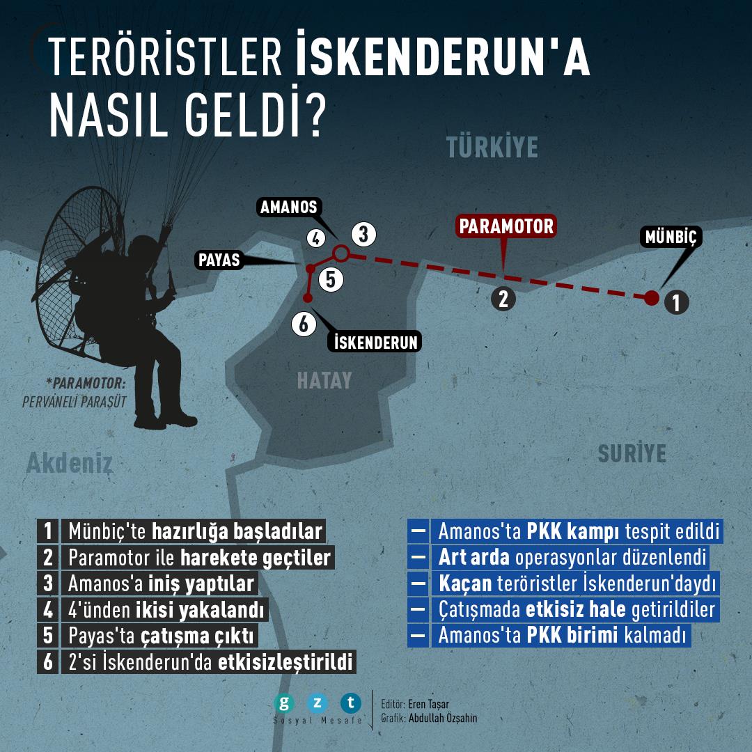Hatay'ın İskenderun ilçesinde, şüphelenilen terörist etkisiz hale getirildiği sırada patlama meydana geldi. İçişleri Bakanı Soylu, terör eylemiyle ilgili iki teröristin etkisiz hale getirildiğini açıkladı. Amanoslar'da PKK terör örgütünün imha edildiğini açıklayan Hatay Valisi, "Herhangi bir terör örgütü kalmamıştır" dedi.