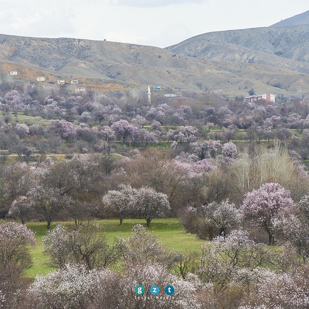 Tunceli'nin Pertek ilçesinde, ilkbaharın gelişiyle çiçek açan badem ağaçları doyumsuz manzaralar sunuyor.