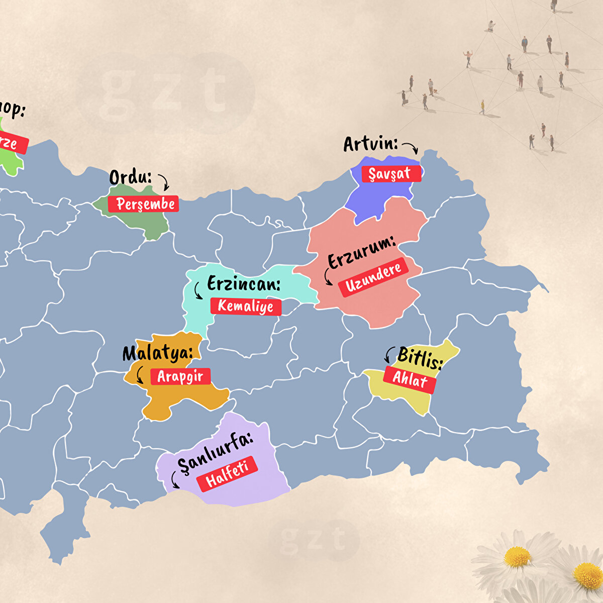 İzmir'in Seferihisar ve Foça, Muğla'nın Akyaka ve Köyceğiz, Isparta'nın Eğirdir ve Yalvaç, Bolu'nun Göynük ve Mudurnu olmak bu dört ile bağlı ikişer ilçe listede. Diğer sakin şehirler Bitlis'in Ahlat, Malatya'nın Arapgir, Antalya'nın Finike, Sinop'un Gerze, Çanakkale'nin Gökçeada, Ankara'nın Güdül, Şanlıurfa'nın Halfeti, Bursa'nın İznik, Erzincan'ın Kemaliye, Ordu'nun Perşembe, Artvin'in Şavşat, Erzurum'un Uzundere, Kırklareli'nin Vize ve Aydın'ın Yenipazar ilçeleri olarak sıralanıyor.