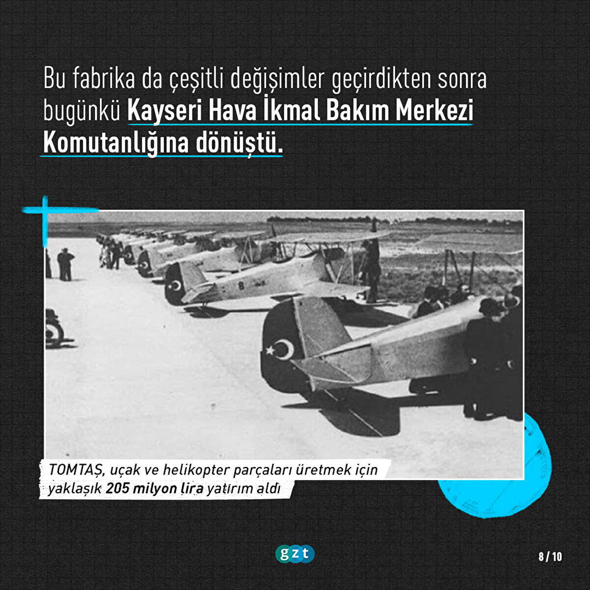 Türkiye'nin uçak fabrikası yeniden açılıyor. Kayseri'nin merkez Melikgazi ilçesinde fabrika kurulacak. TOMTAŞ'ın yarım kalan macerası tamamlanacak. ASFAT, Erciyes Teknopark, Türk Havacılık ve Uzay Sanayii ile TOMTAŞ Yatırım Ortaklığı tarafından kurulan TOMTAŞ Havacılık ve Teknoloji AŞ'de uçak gövdesi kanatları, kapıları, kumanda yüzeyleri, iniş takımları gibi ana montaj parçaları pervane, helikopter rotorları ve motor parçaları üretilecek.