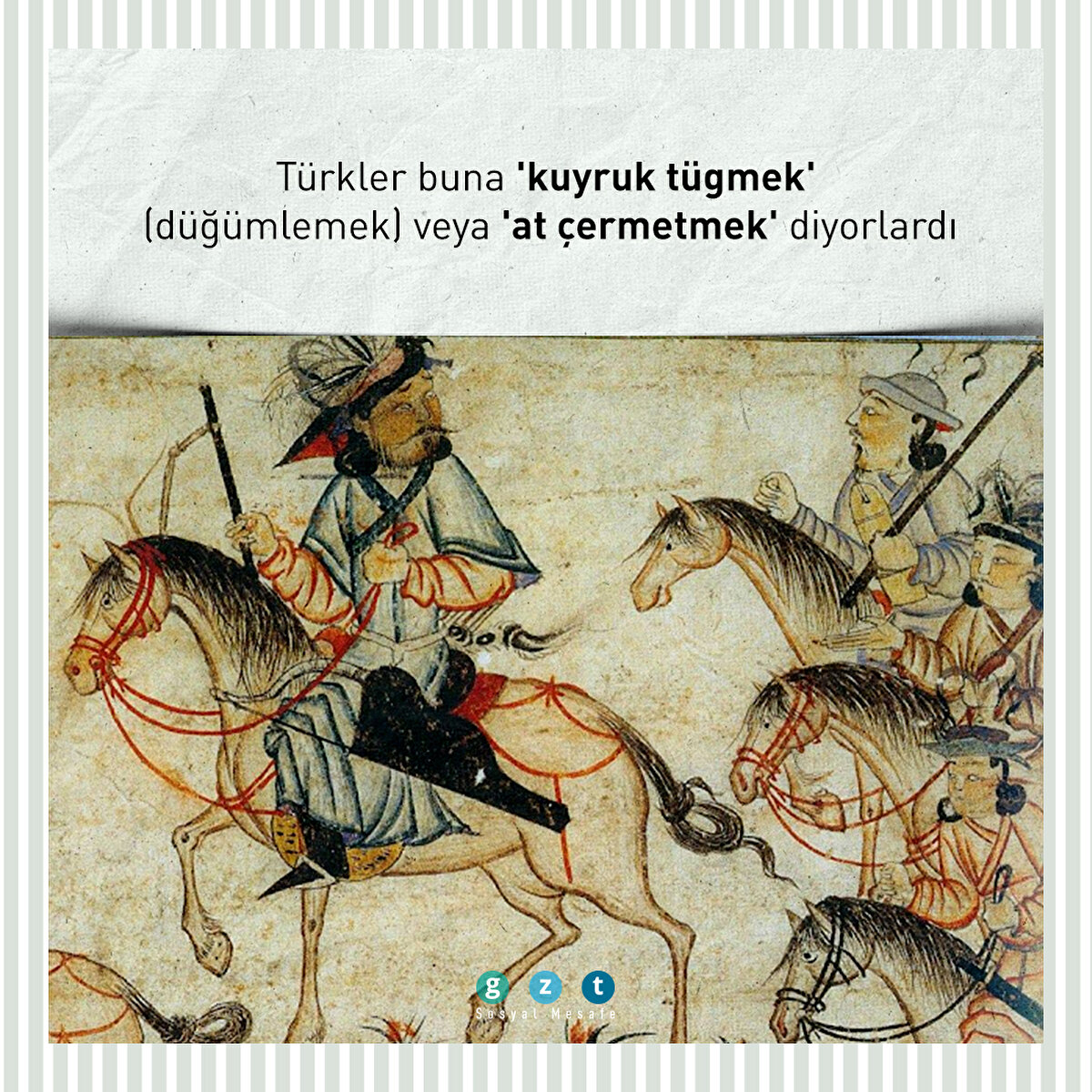 Eski Türklerde 'kuyruk tügmek' ve 'at çermetmek' olarak bilinen gelenek, Selçuklu ve Osmanlı dönemlerinde de devam etti. Amaç, savaş sırasında atların manevra yeteneklerini artırmaktı. At kuyruğu düğümlemek kahramanlık işareti olarak görülüyordu. Tonyukuk Orhun Yazıtları'nda, Kaşgarlı Mahmud ise Dîvânu Lugâti't-Türk'te Türklere özgü bu savaş geleneğinden bahsetmişti.