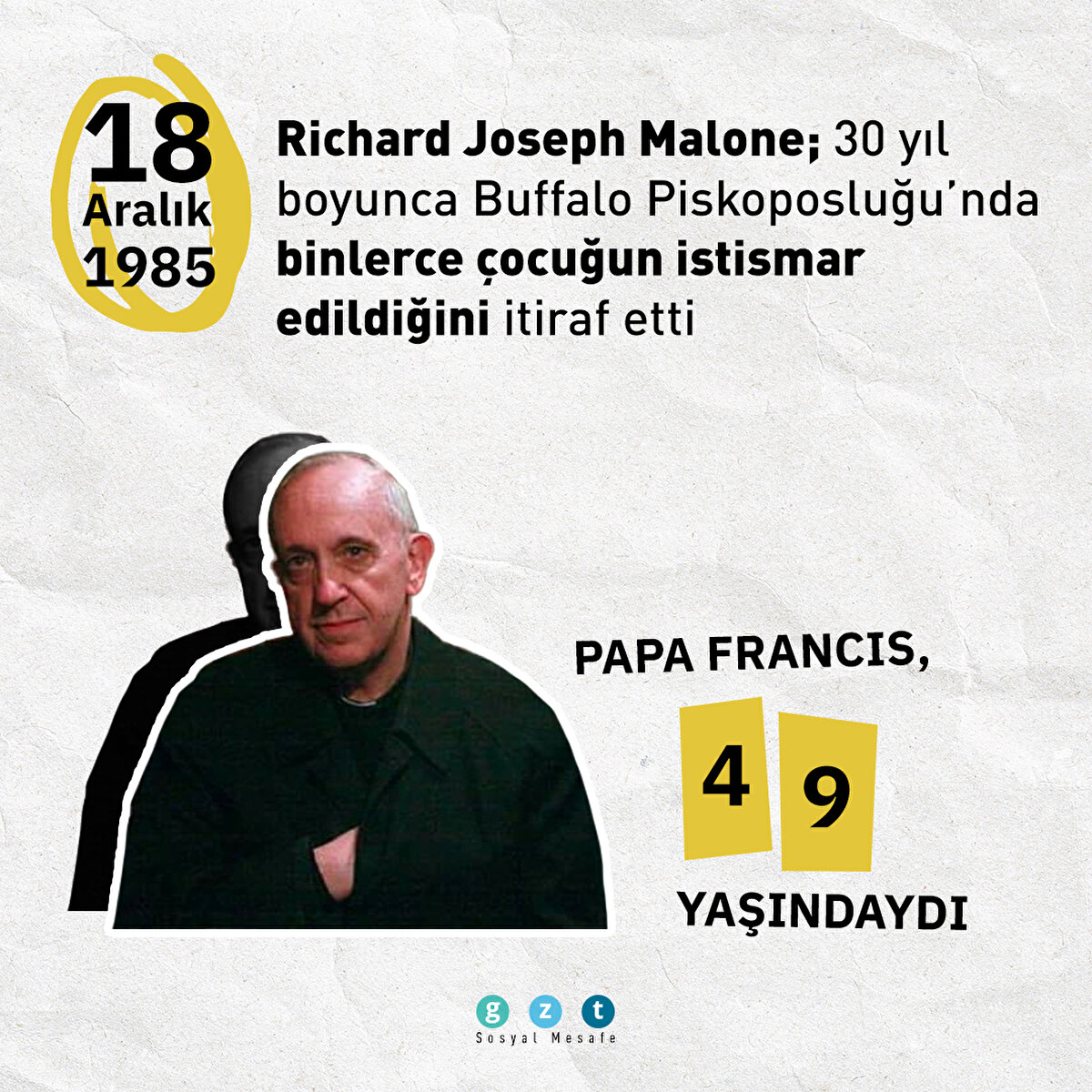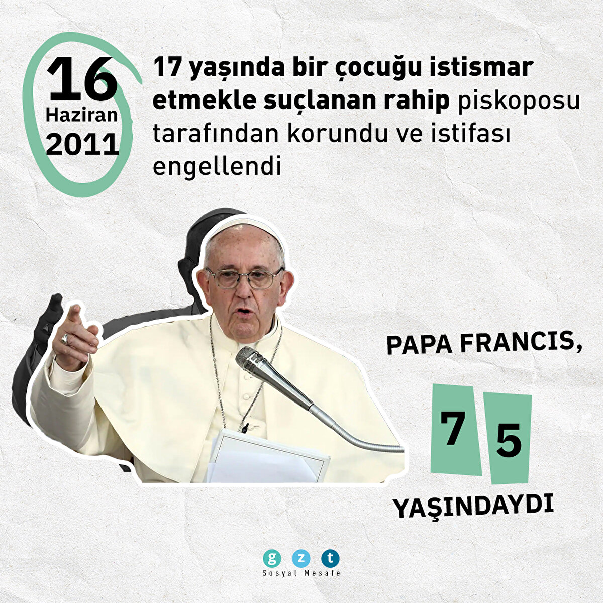 Papa, "Mağdurlara, yaşadıkları travma için üzüntümü, acımı ve utancımı, utancımızı sunuyorum. Kilise'nin çok uzun süre onları merkeze almaktan aciz kalmasının utancını" diye konuştu.