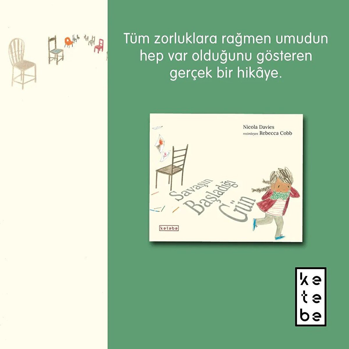 Nicola Davies ve Rebecca Cobb'dan tüm zorluklara rağmen umudun her zaman var olduğunu gösteren çarpıcı bir hikaye. (5 yaş ve üzeri)🪑📚🏫