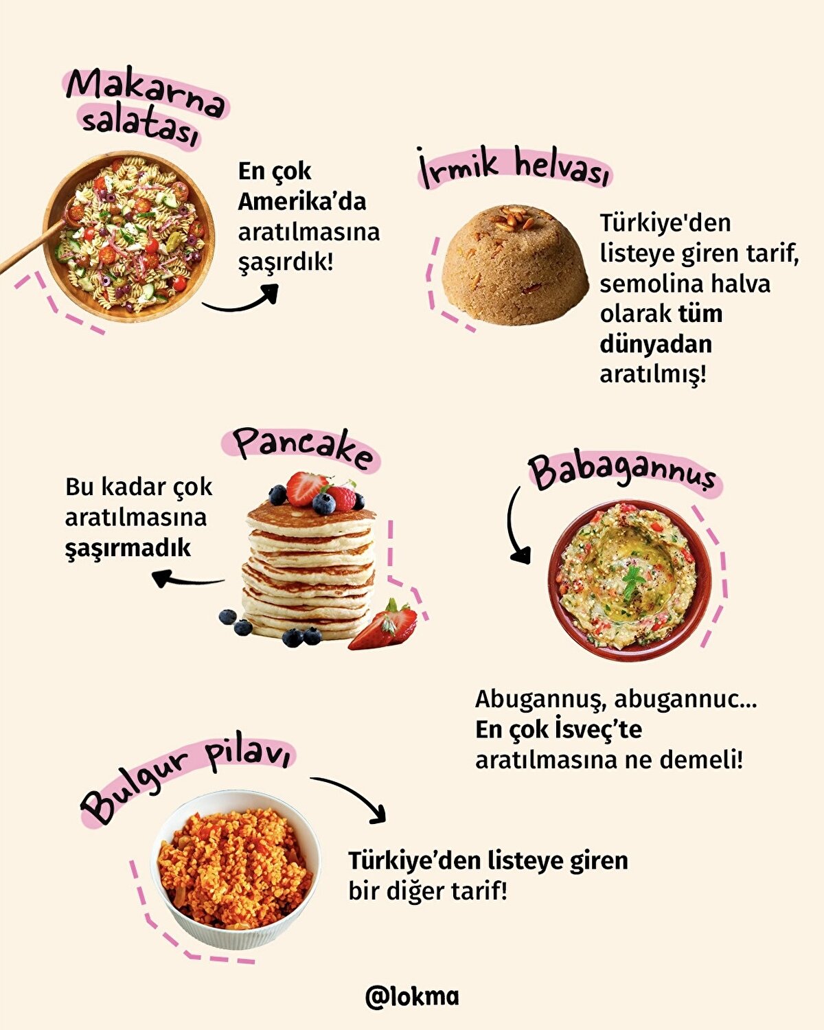 Listede elbette Türkiye'den de lezzetler var! Peki siz 2022'de bu tariflerden en çok hangisini arattınız?